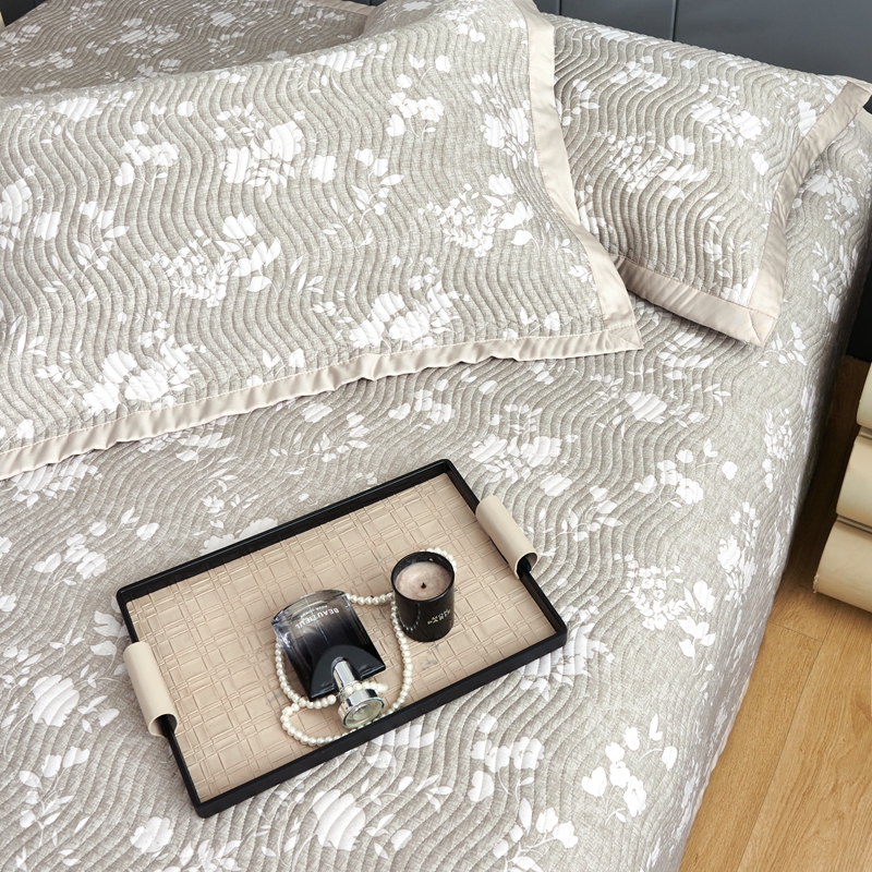 • 91家纺网 家纺一手货源 找家纺 莎果 2025春夏莫代尔印花高温砂洗床盖三件套四件套 罗曼庄园