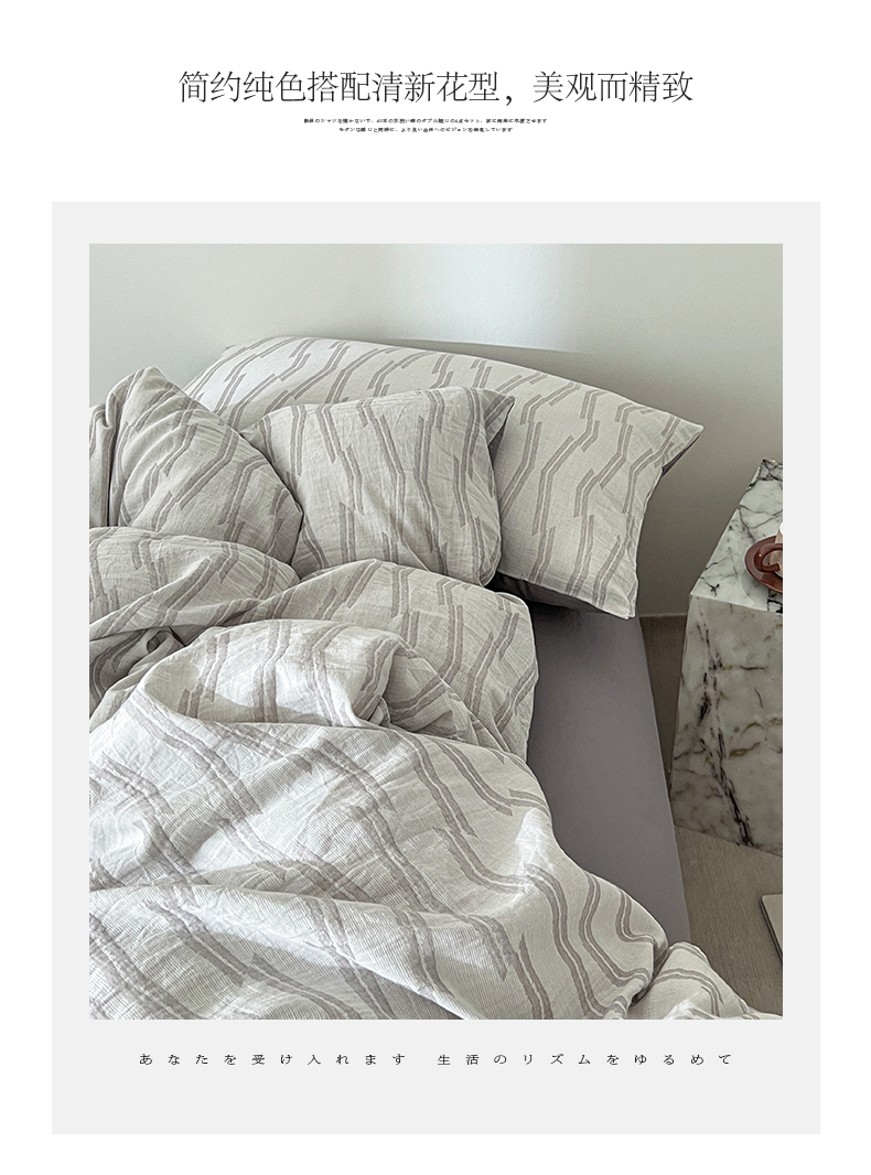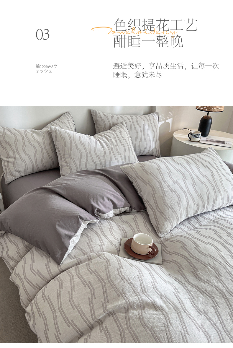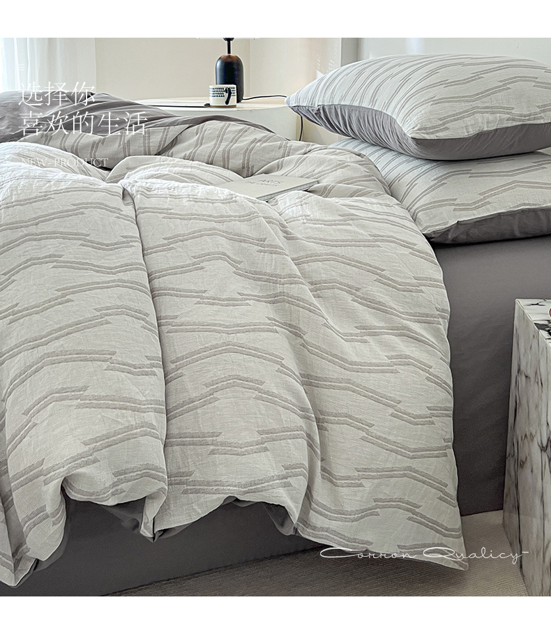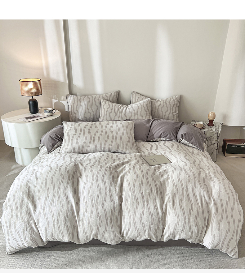 商品名称:小懒猪2025色织水洗双层纱提花四件套 亚瑟