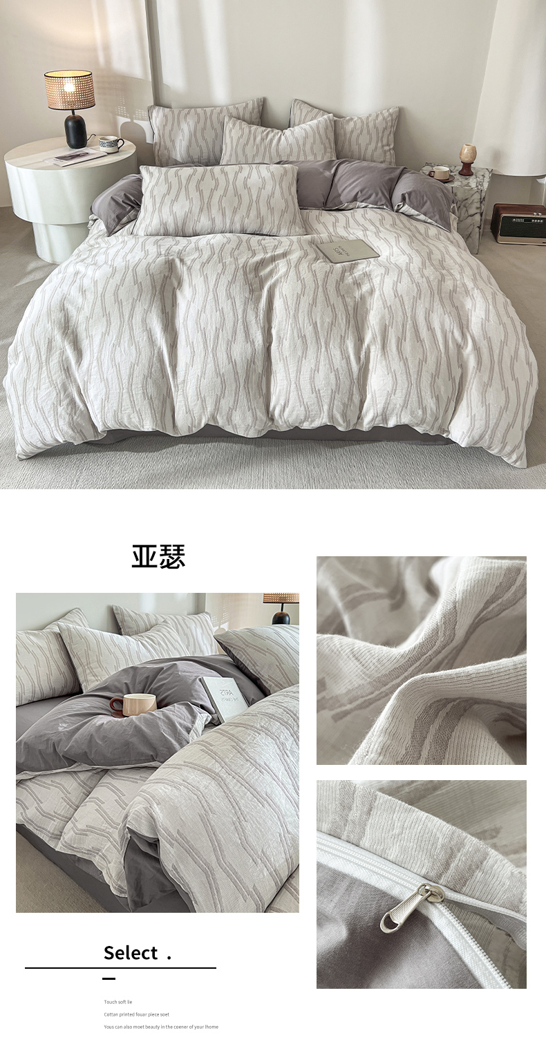 (总)小懒猪 2026新款亲肤舒适立体全棉纯棉提花四件套-二,伯格-金属灰,伯格-米杏,伯格-深秋咖,花柔玉净-金属灰,花柔玉净-米杏,花柔玉净-深秋咖