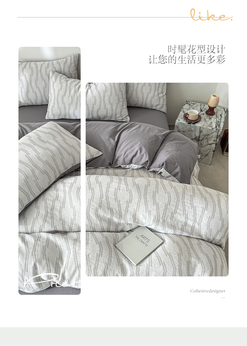 (总)小懒猪 2026新款亲肤舒适立体全棉纯棉提花四件套-系列三,布兰卡-金属灰,布兰卡-米杏,布兰卡-银灰,伊贝卡-米杏,伊贝卡-奶昔白,伊贝卡-银灰