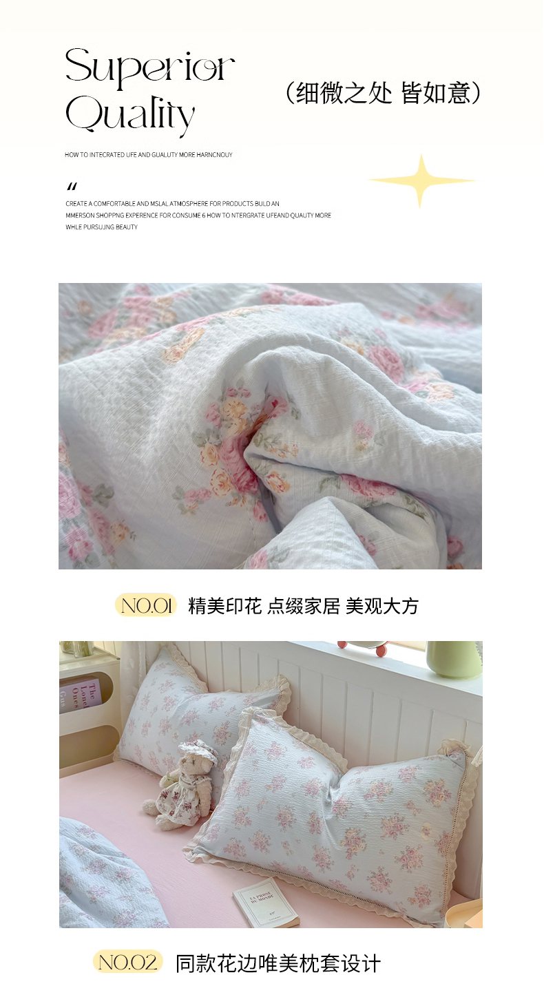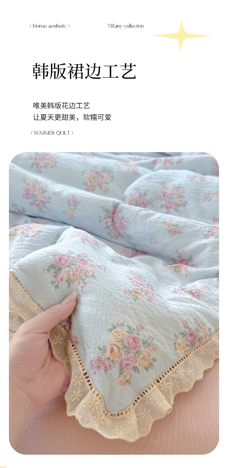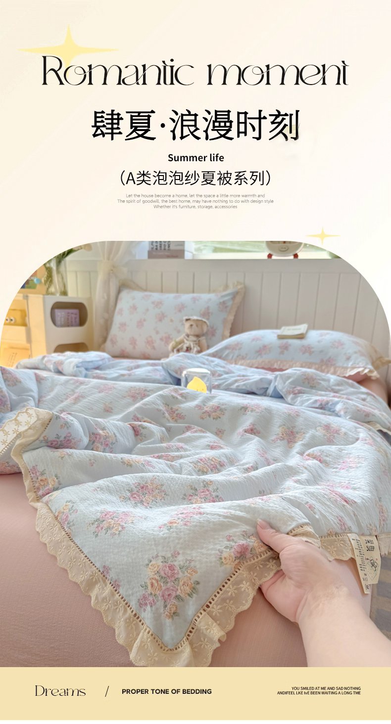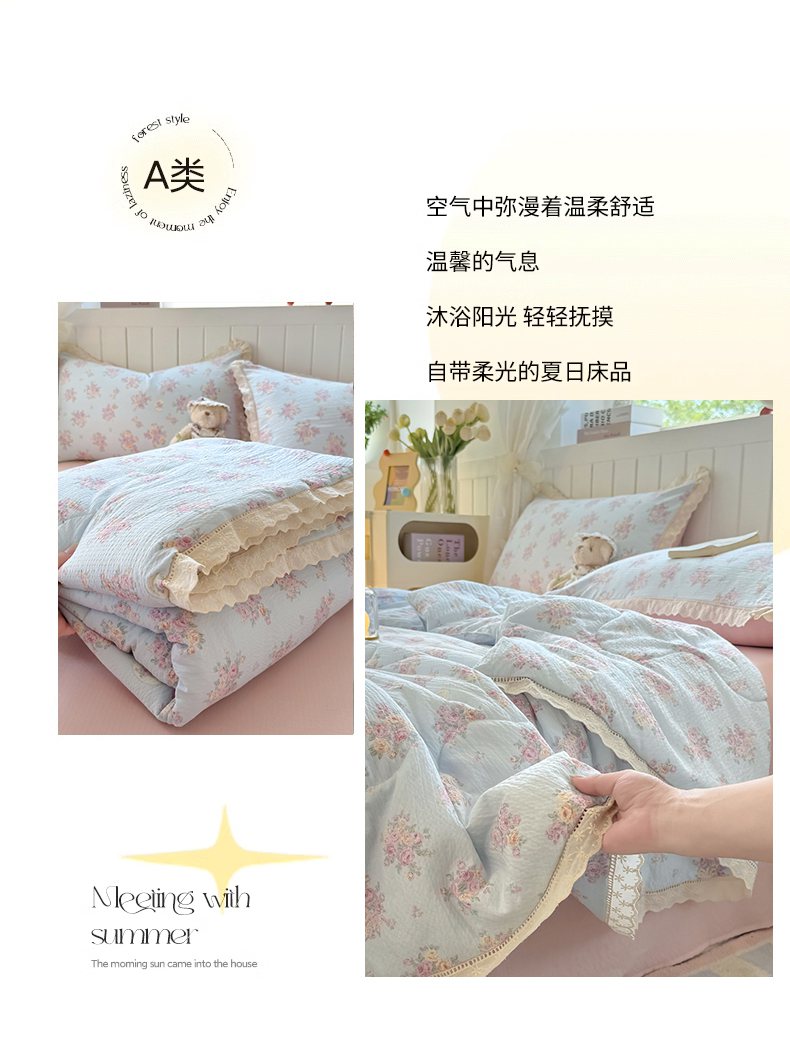 商品名称:丽美人家纺 2025新款韩版花边皱皱纱夏被四件套 铃兰