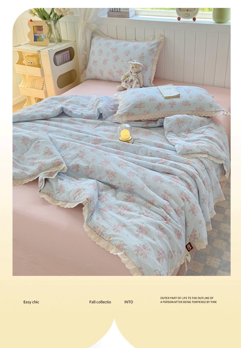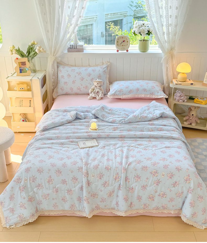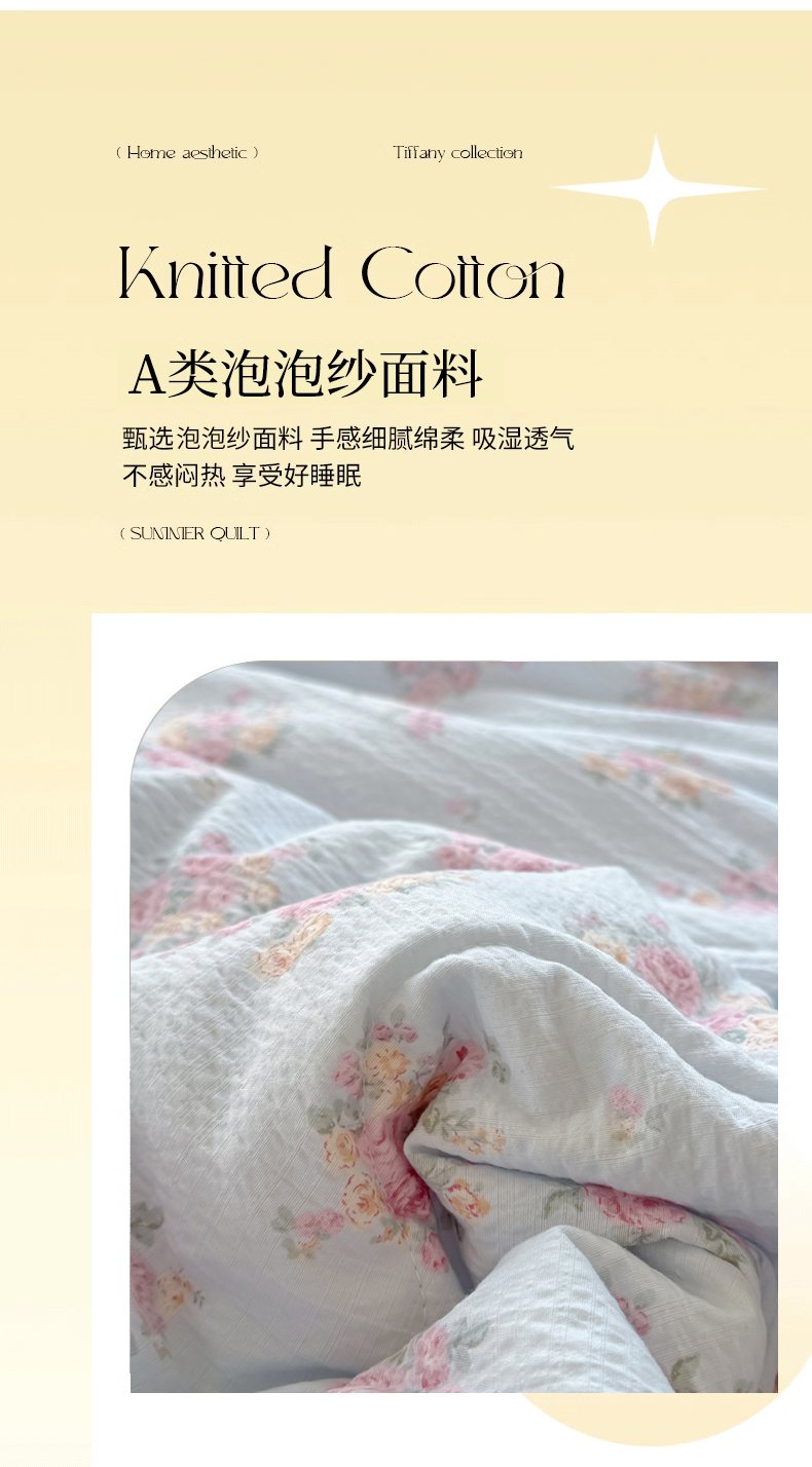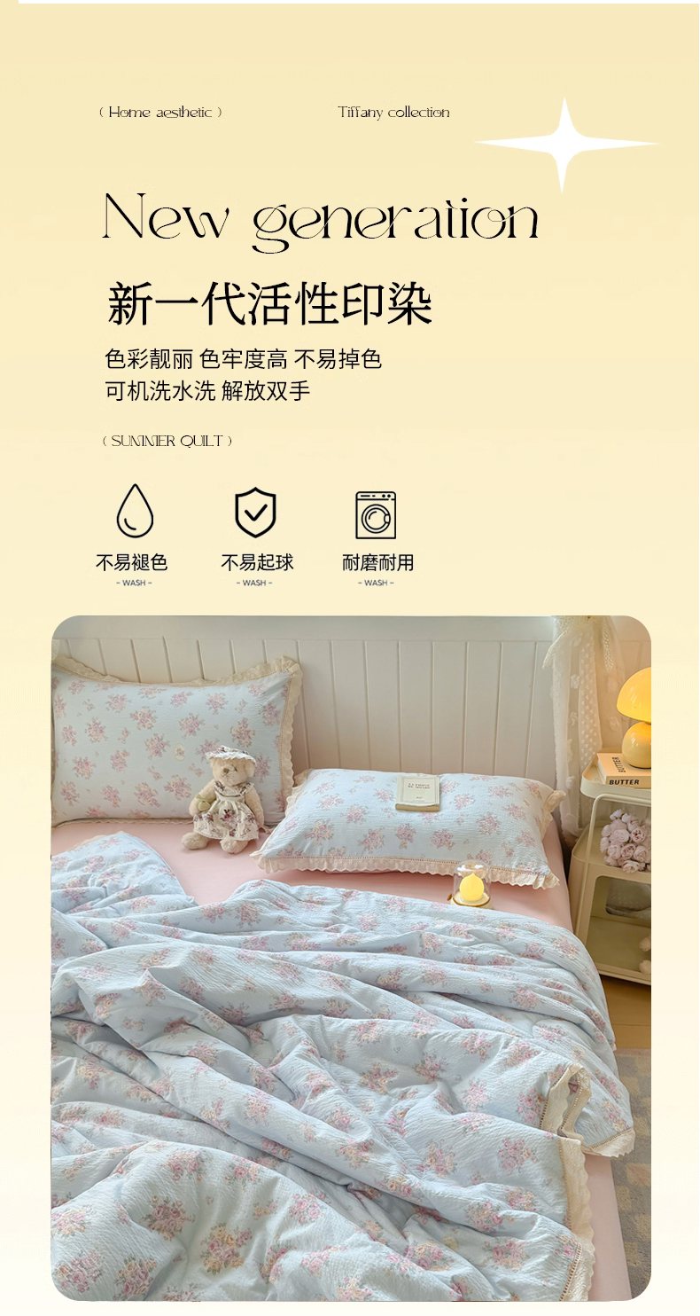 商品名称:丽美人家纺 2025新款韩版花边皱皱纱夏被四件套 铃兰