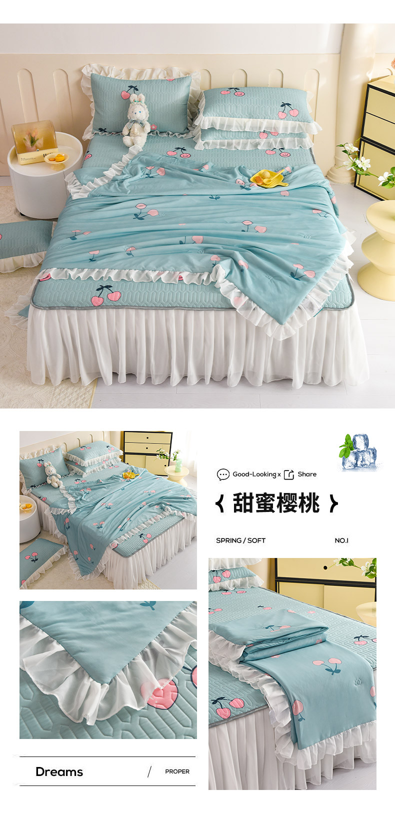 当前位置: 91家纺网 > 商品网购 > 床品套件 > 四件套 > 夏被四件套 > 悦织湾家纺 2025新款A类凉感丝床裙款乳胶凉席席子夏被夏凉被空调被四件套 红粉佳人