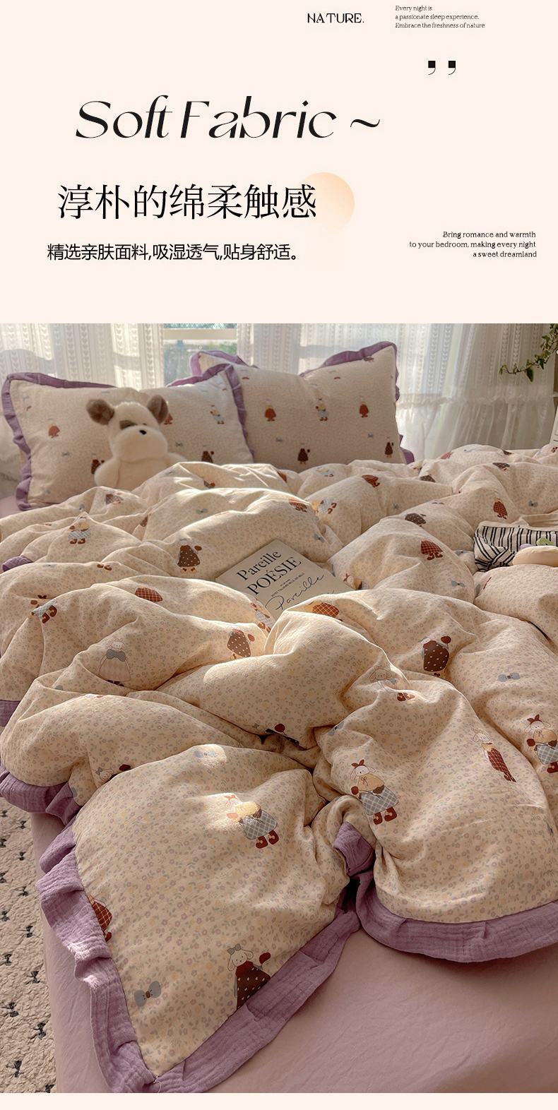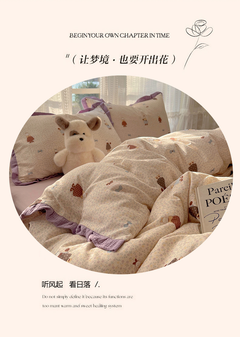 当前位置: 91家纺网 > 商品网购 > 床品套件 > 四件套 > 其它四件套 > 盼季家纺 2025新款亲肤棉皱皱纱花边四件套 皱皱纱花边-碎花小兔