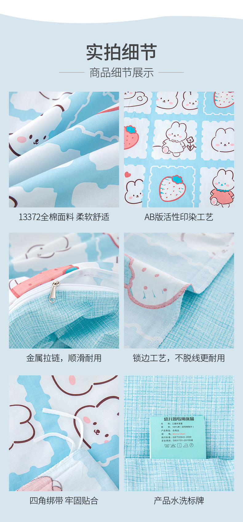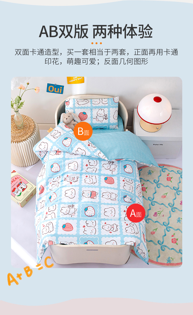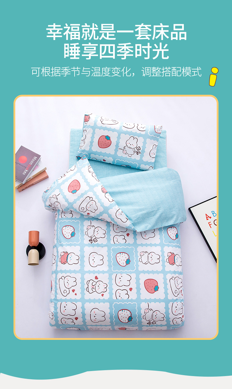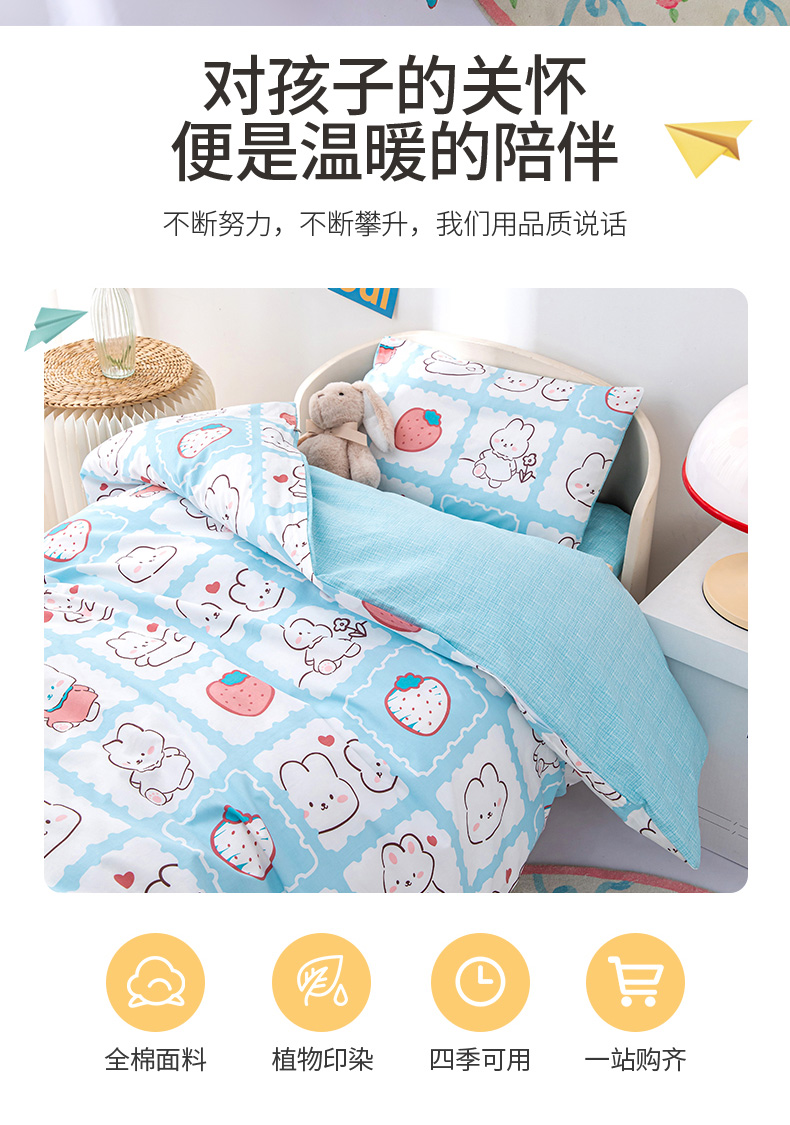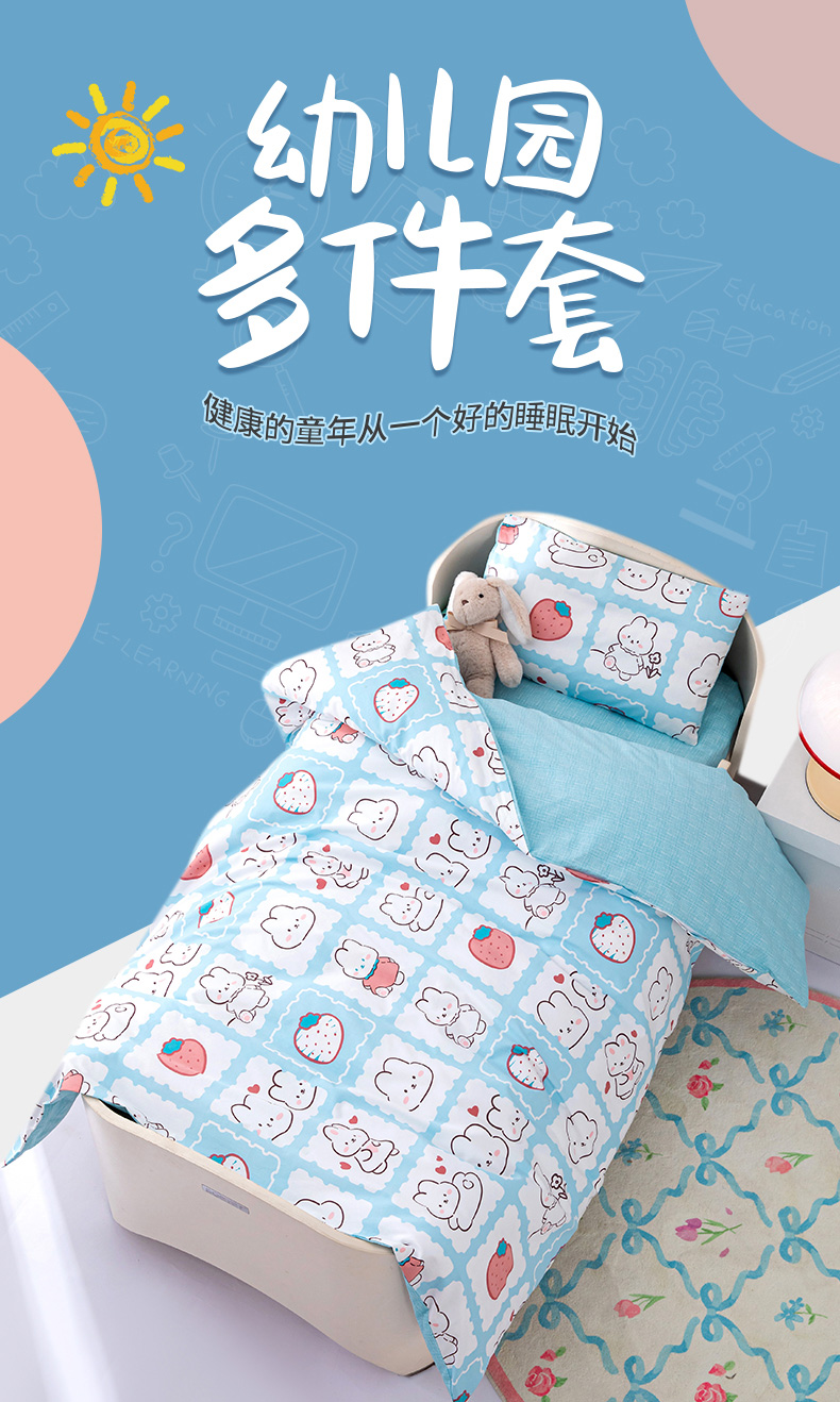 当前位置: 91家纺网 > 商品网购 > 床品套件 > 四件套 > 其它四件套 > 嗨皮宝贝 2025新款全棉纯棉13372幼儿园三件套多件套 小兔可可-蓝