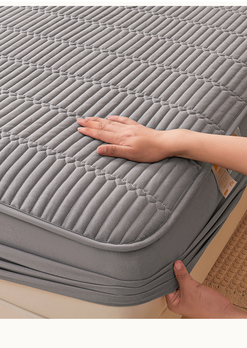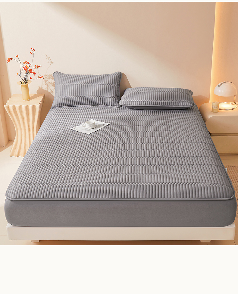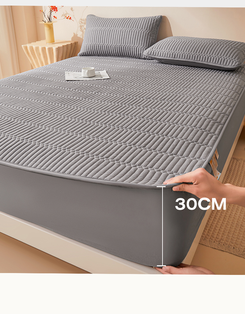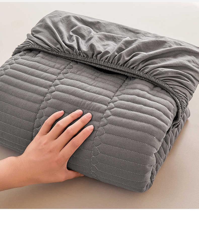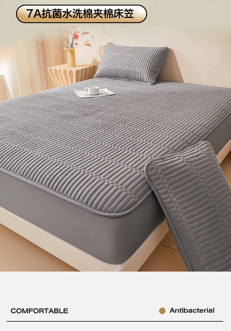雯豆家纺 2025新款简爱A类夹棉床笠三件套水洗棉磨毛床单保护套 简爱-深空灰