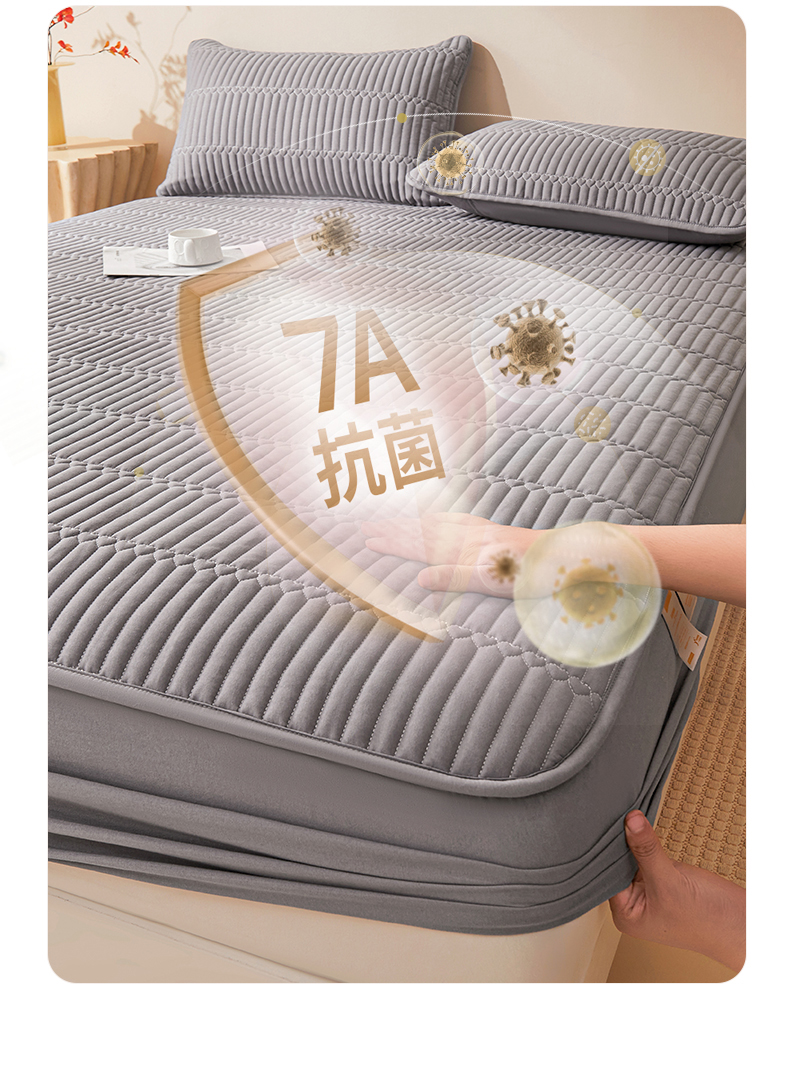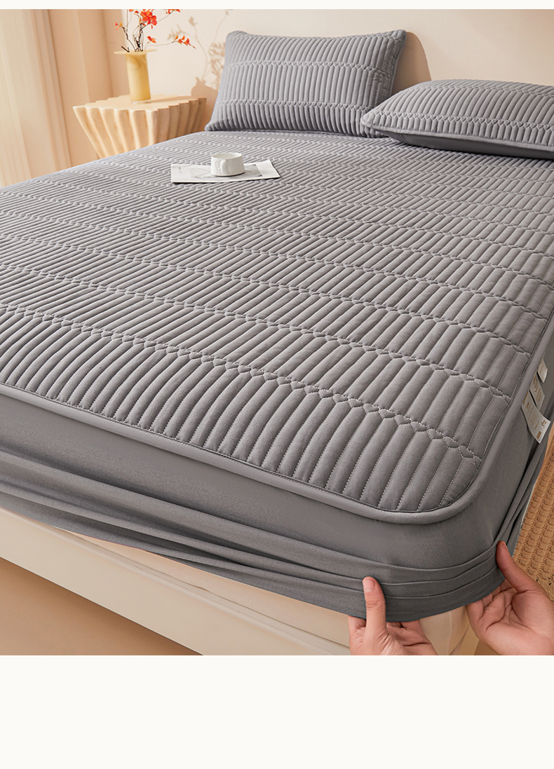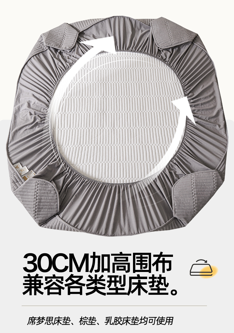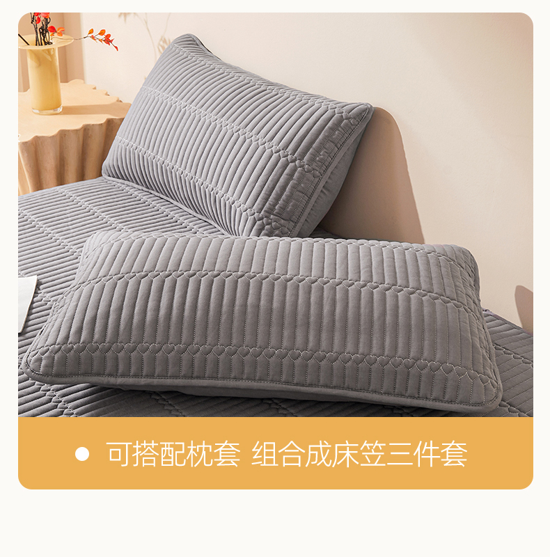 • 91家纺网 家纺一手货源 找家纺 雯豆家纺 2025新款简爱A类夹棉床笠三件套水洗棉磨毛床单保护套 简爱-深空灰