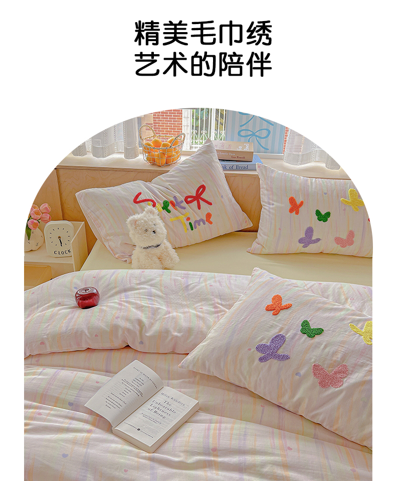 (总)静家居-简约原创家纺 2025新款A类全棉双层纱sweet毛巾绣四件套,彩墨流砂,大彩,蝶舞,小熊软糖,星线