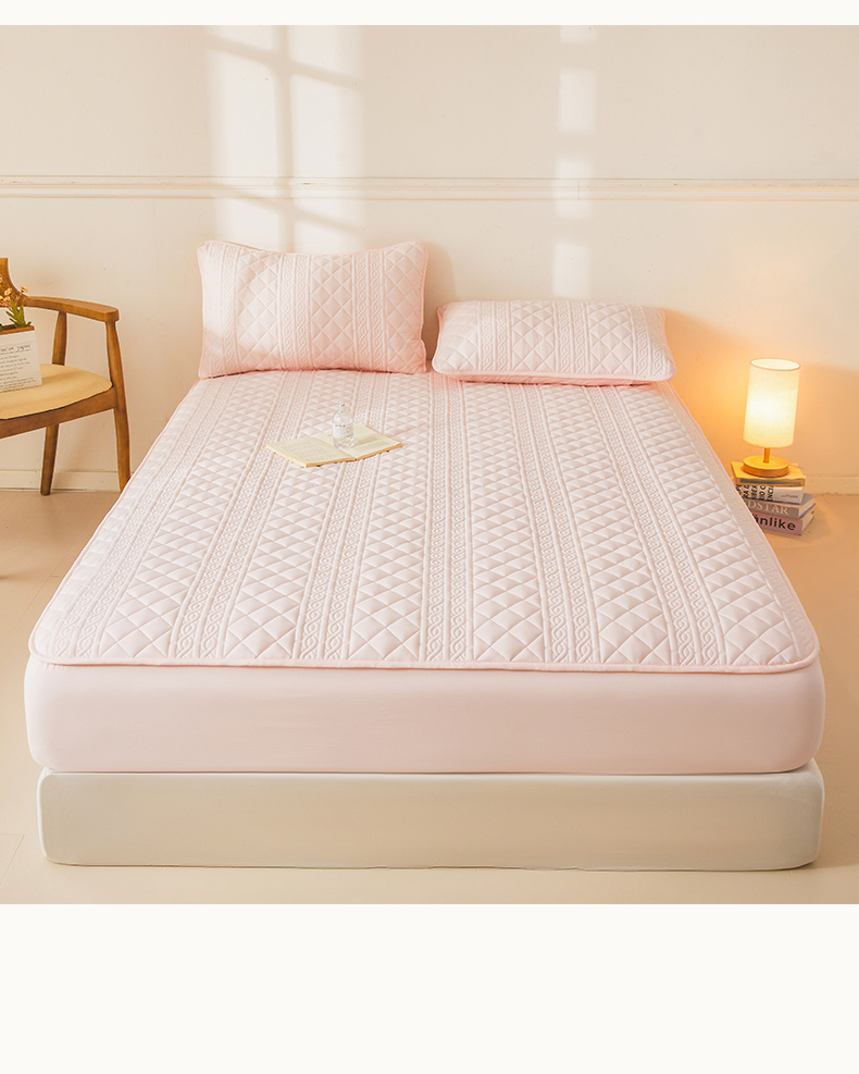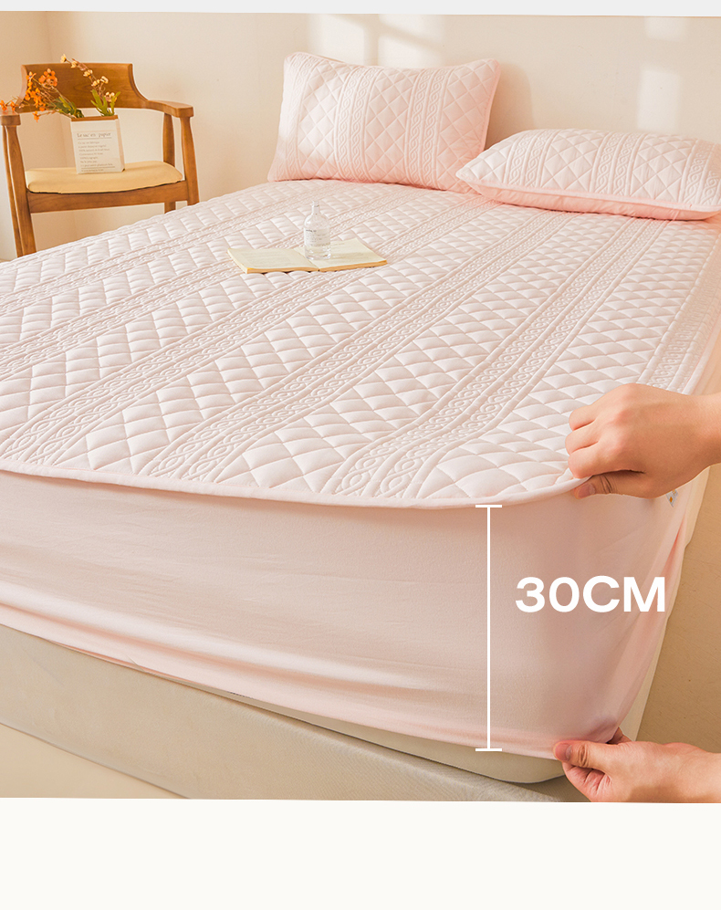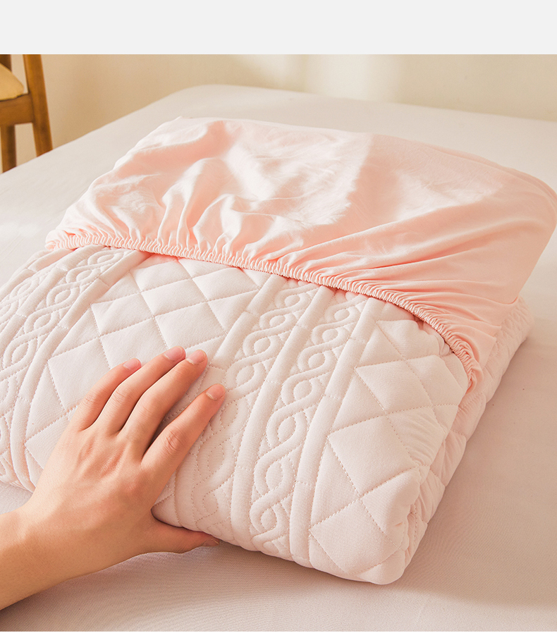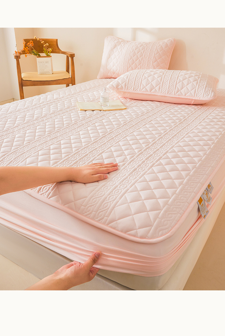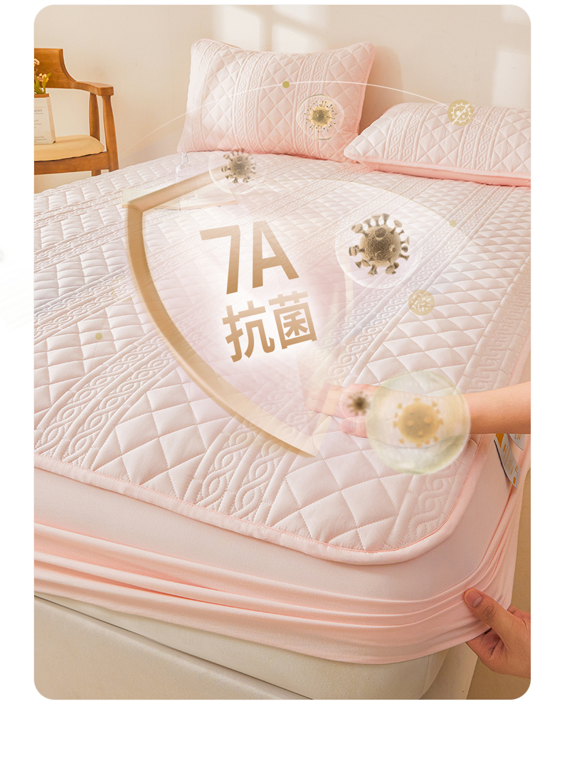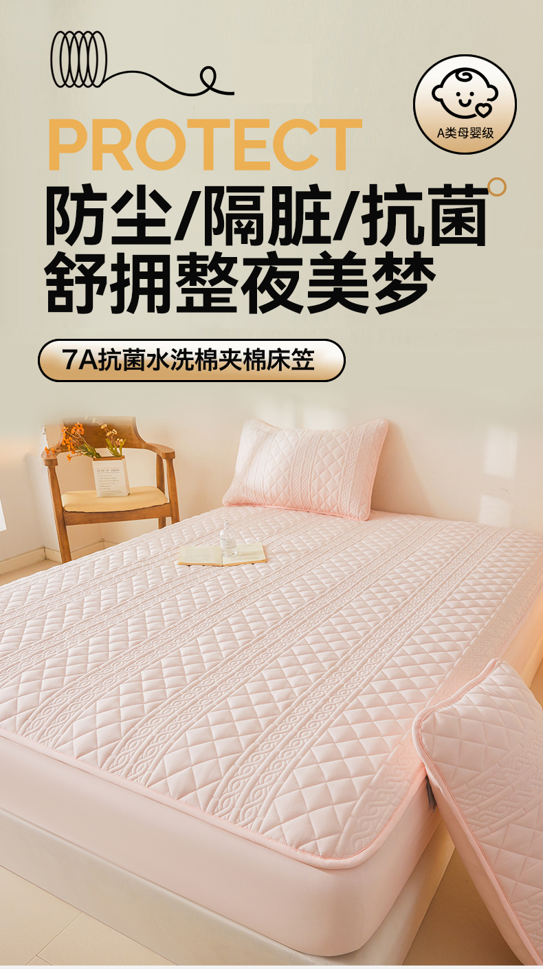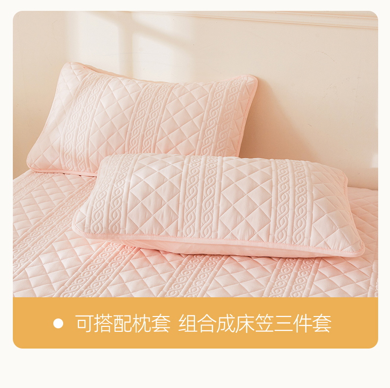 • 91家纺网 家纺一手货源 找家纺 雯豆家纺 2025新款简爱A类夹棉床笠三件套水洗棉磨毛床单保护套 梵可-密合粉