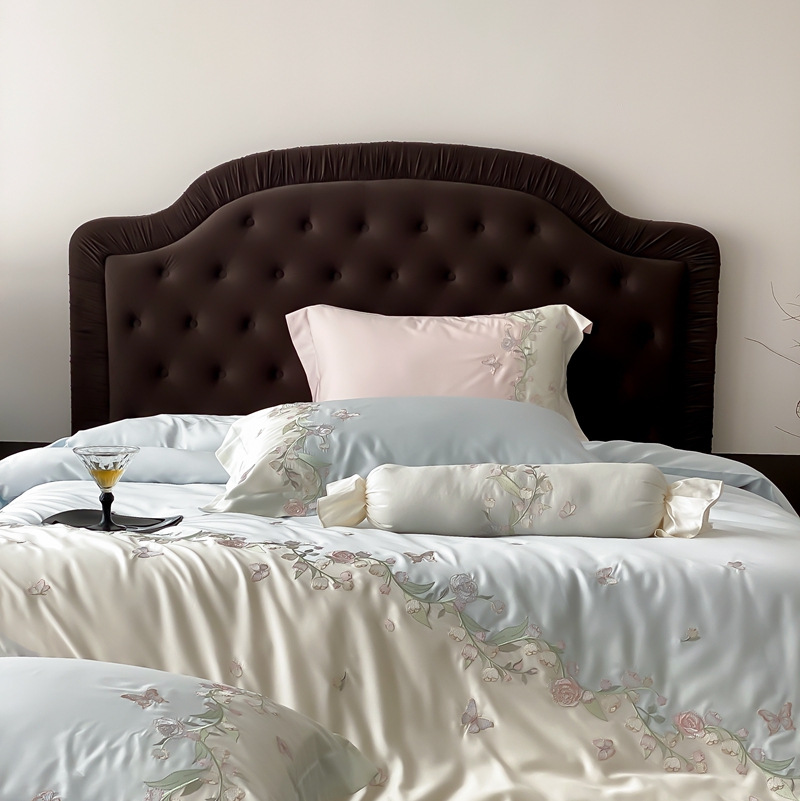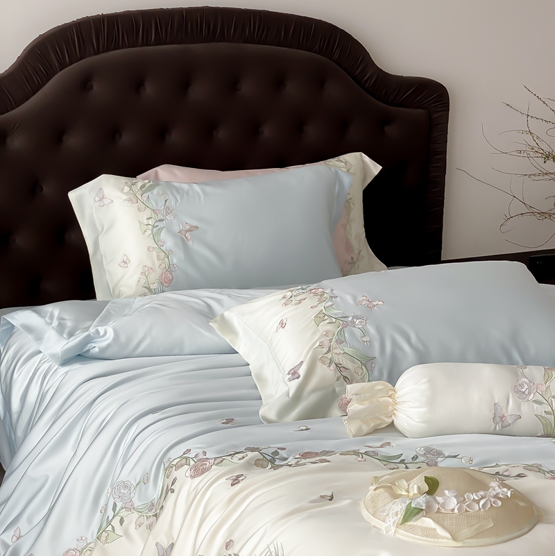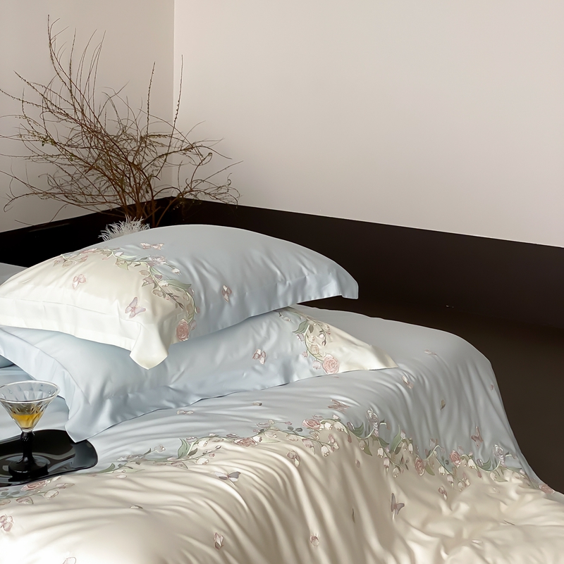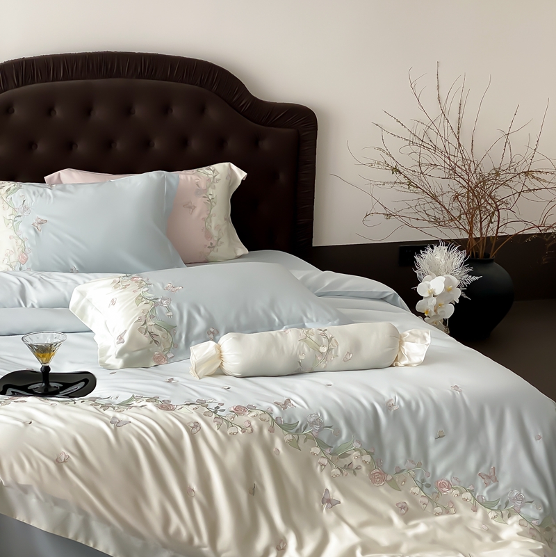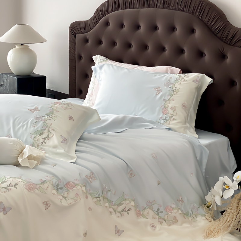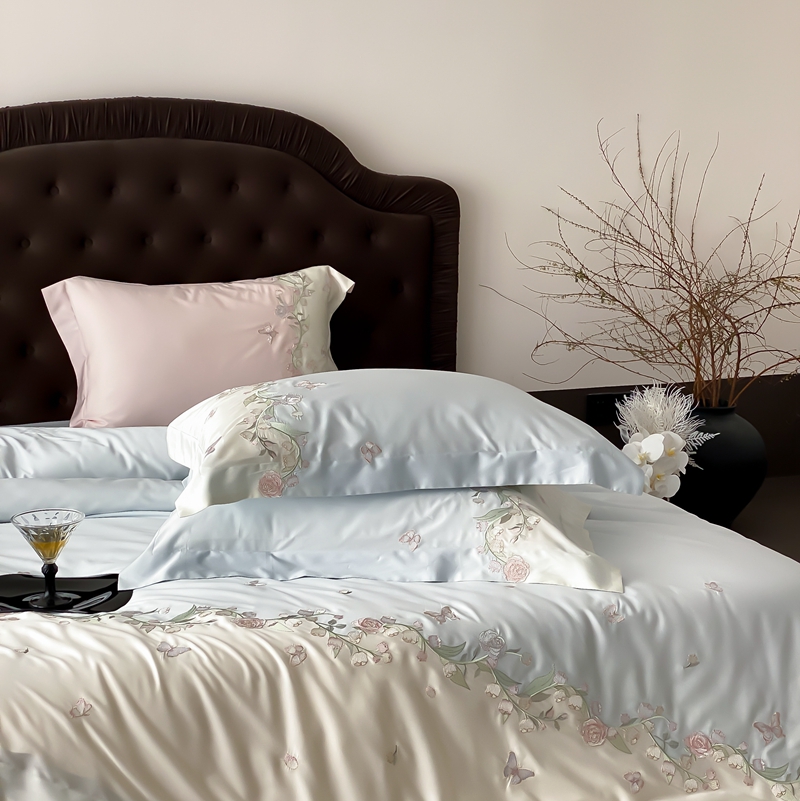 佳汐蓝家纺 2025春夏新款铃兰花颂 百支贡缎 四件套 铃兰花颂·奶芙蓝