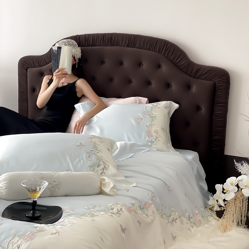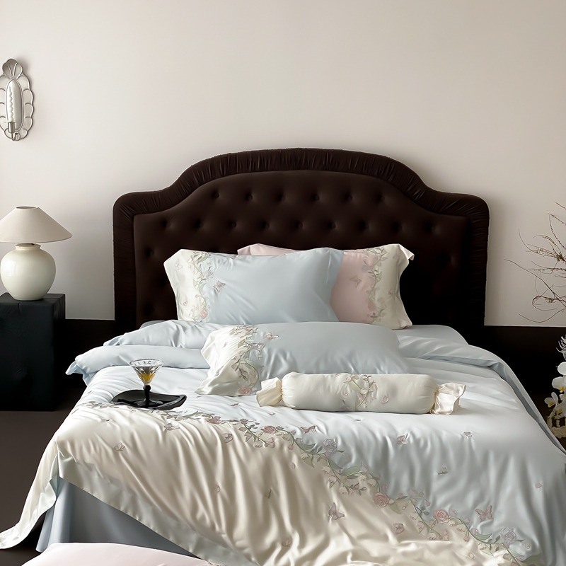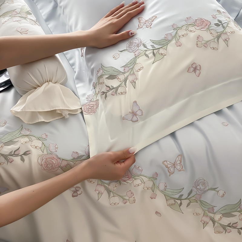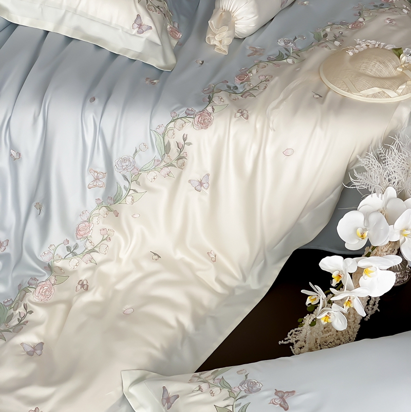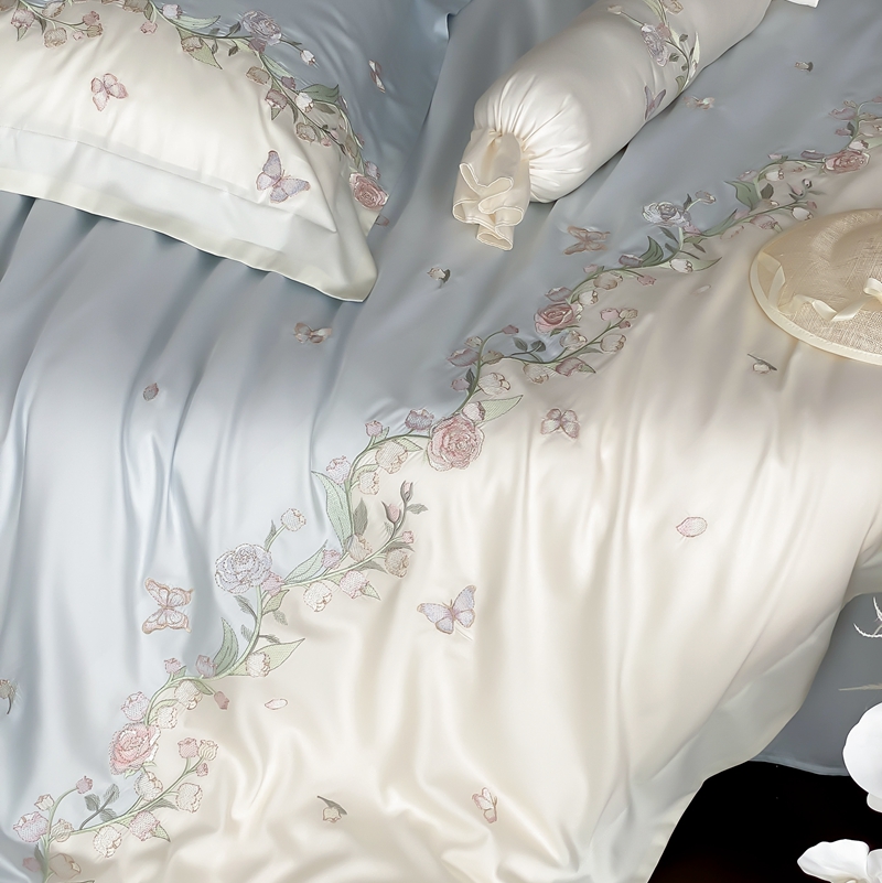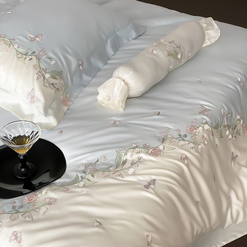 佳汐蓝家纺 2025春夏新款铃兰花颂 百支贡缎 四件套 铃兰花颂·奶芙蓝