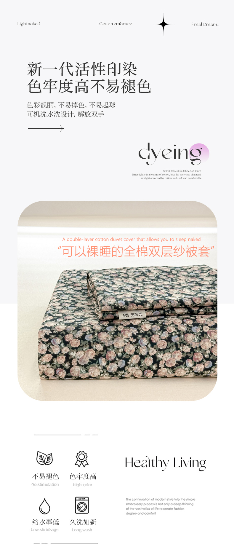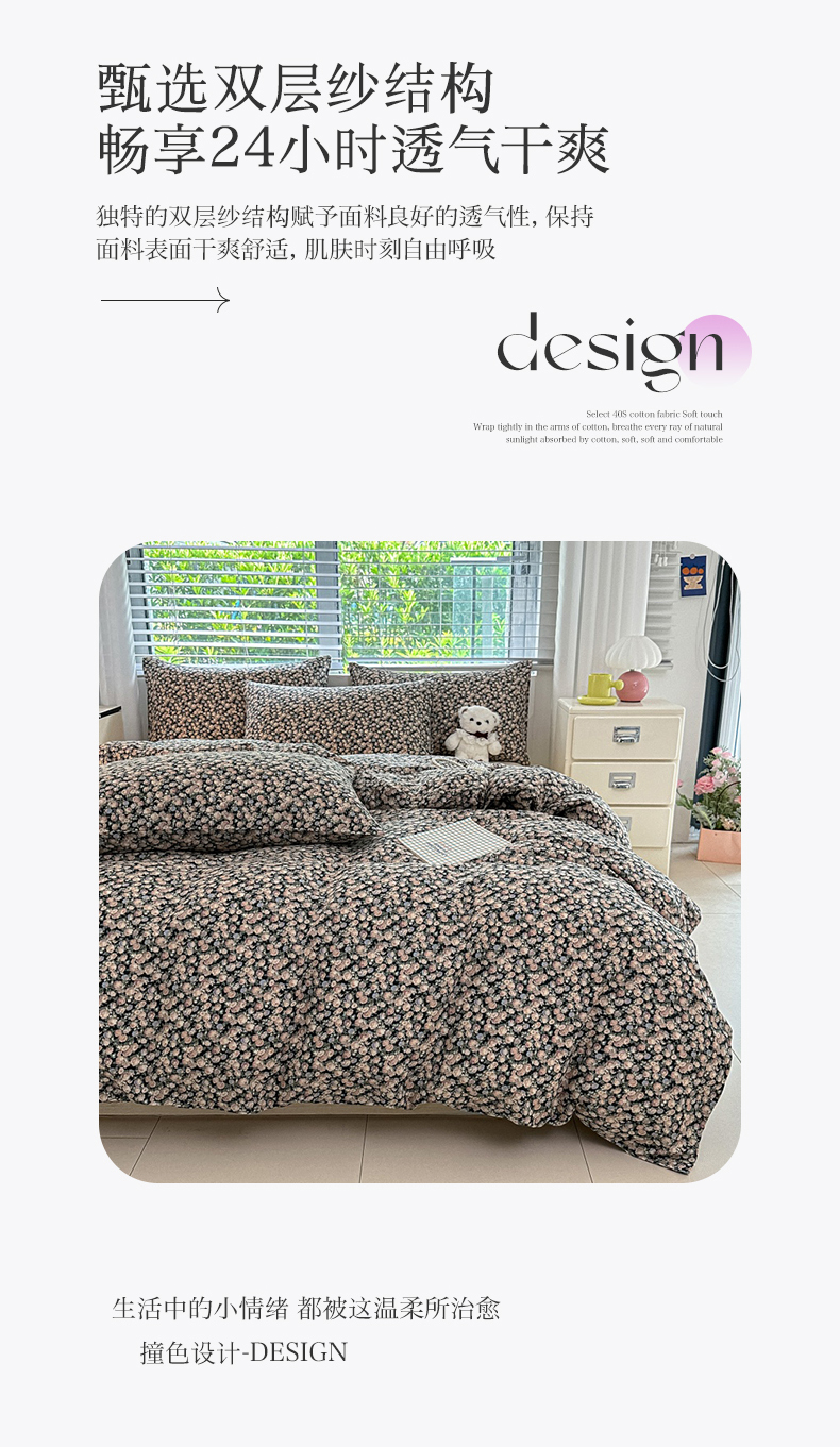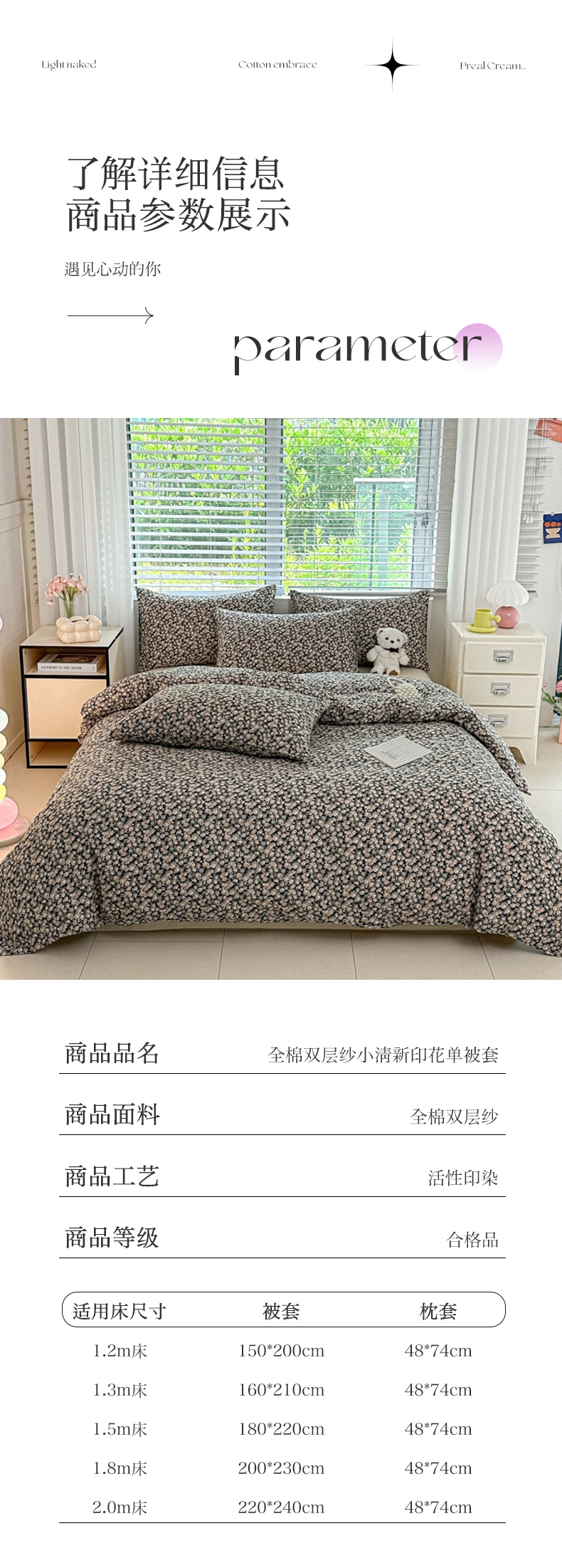 (总)芙绣家纺 2025新款A类全棉双层纱小清新印花单被套学生单被套单枕套,春风里,繁花似锦,花间絮语,假日甜心猫-粉色,假日甜心猫-米白,漫天心,蔷薇梦境,十里桃花,甜心格格,组合图仅供参考