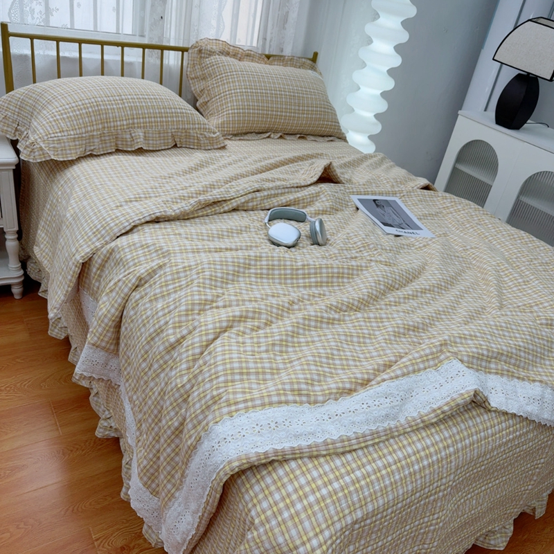 暖居 2025新款全棉水洗棉床盖三件套可配同款被套同款多功能夏被四季通用 黄小格