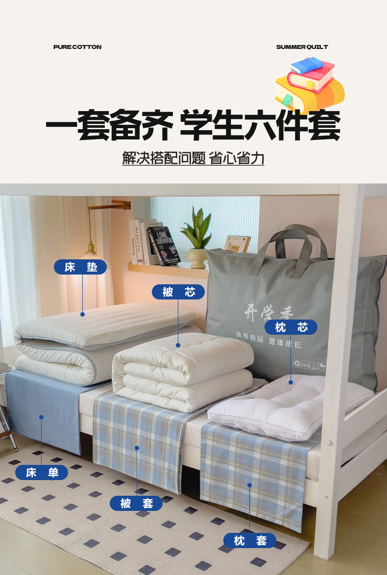 【床单款】0.9六件套+被套1.5+0.9床垫+1.5/4斤被