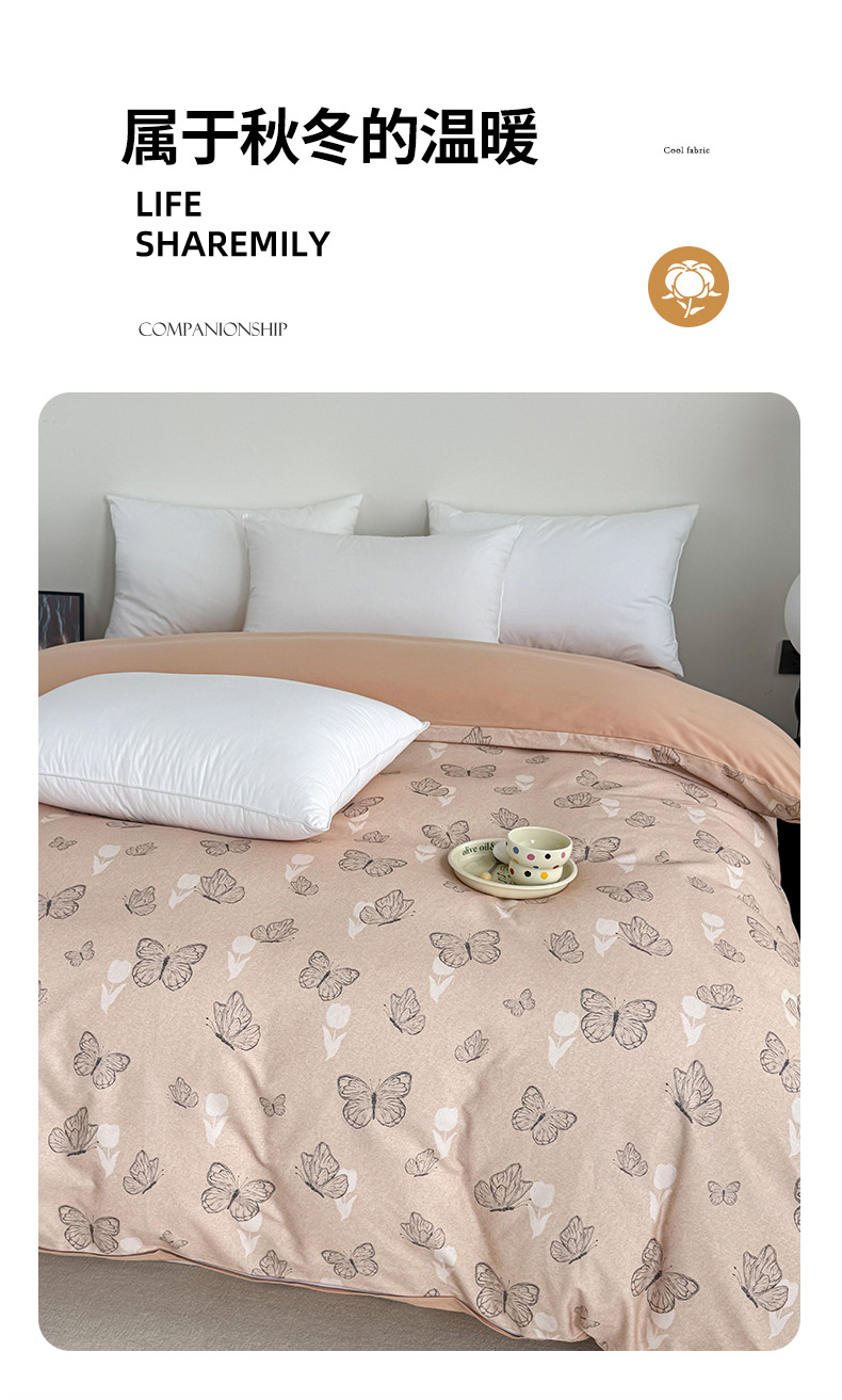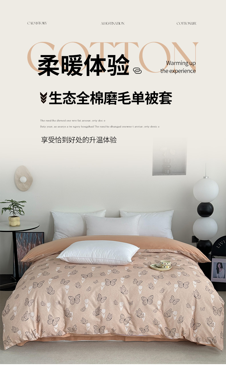 • 91家纺网 家纺一手货源 找家纺 艾迪尚家纺 2025新款生态全棉纯棉磨毛印花单品系列-单被套被套单件 纷飞-桔