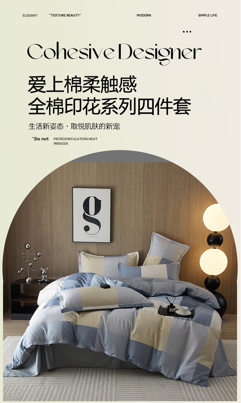 商品名称:合纵跨境工厂 2025新款40支纯棉跨境外贸JIT一件代发TEMU亚马逊希音包过核价-全棉印花四件套 布洛尼-灰