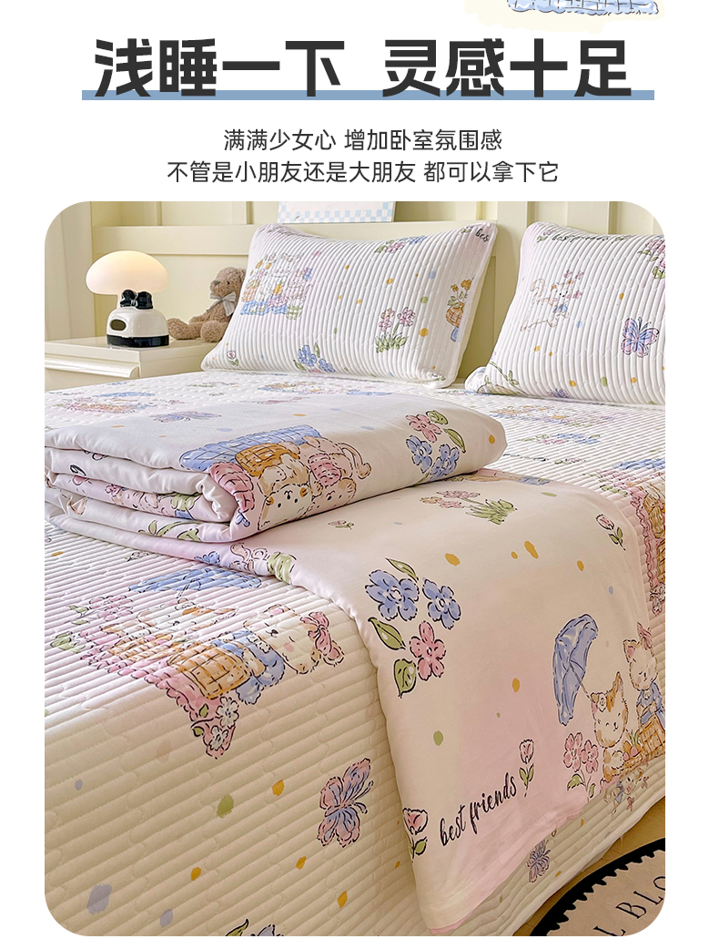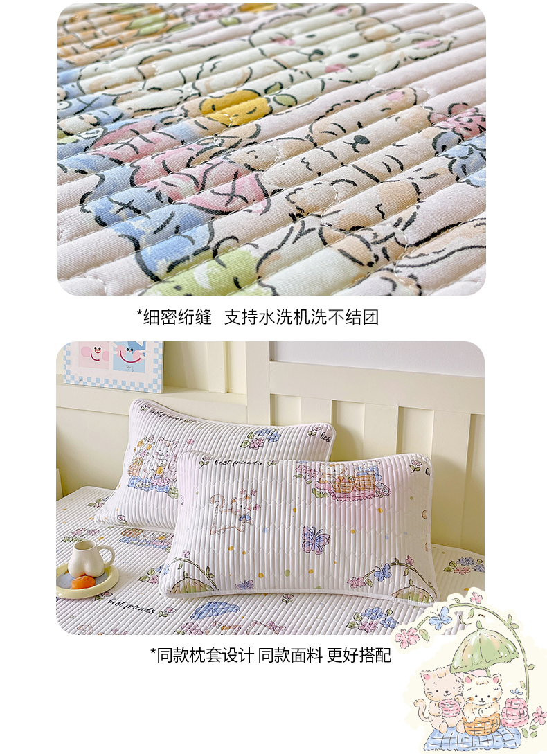 当前位置: 91家纺网 > 商品网购 > 床上用品 > 床盖 > 金鑫汇家纺2025新款A类全棉绗缝夹棉印花床盖 喵喵日记