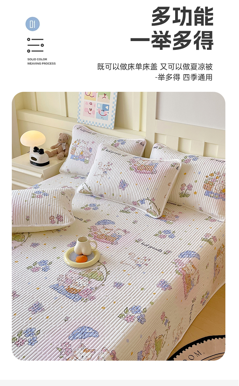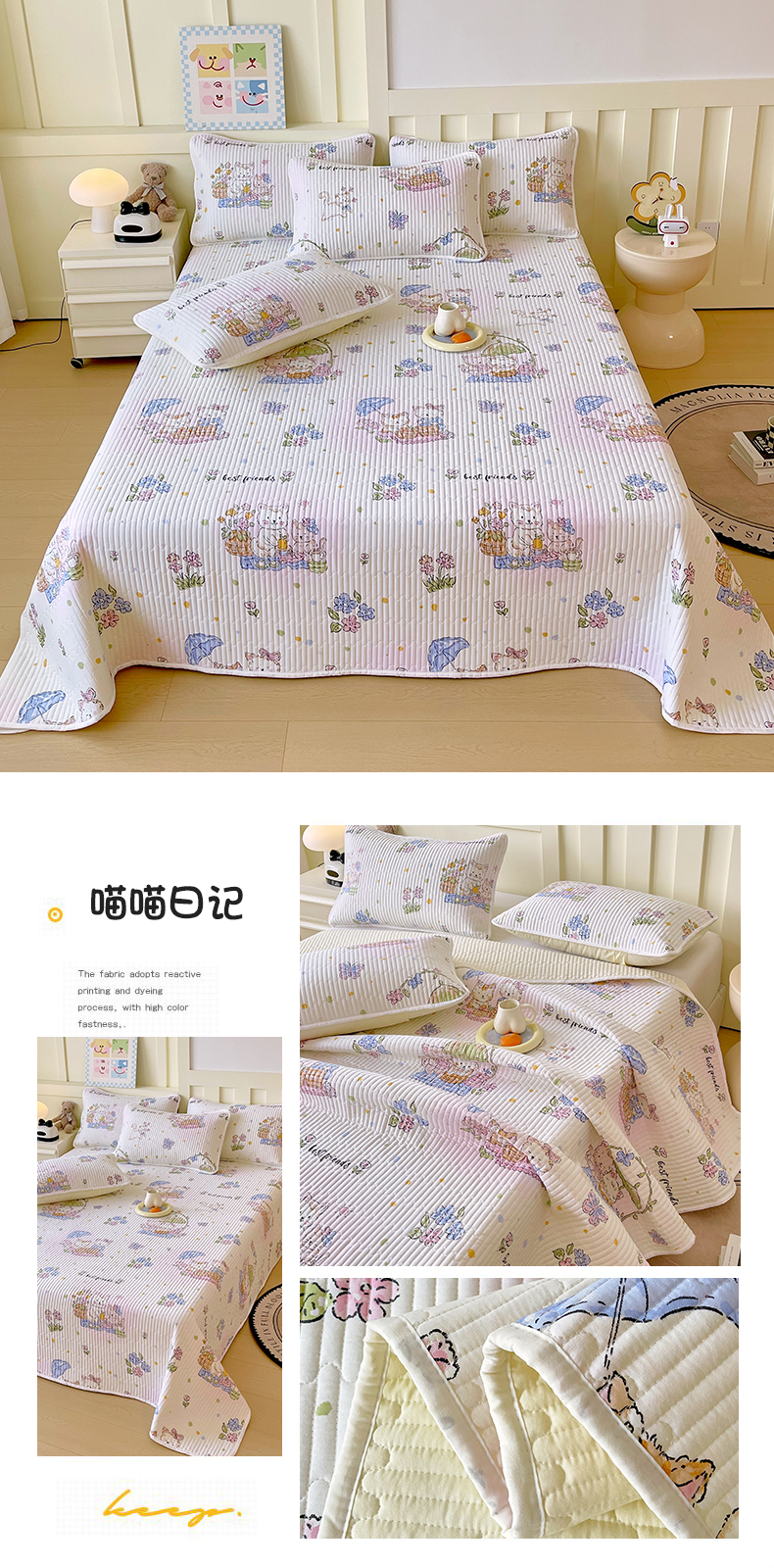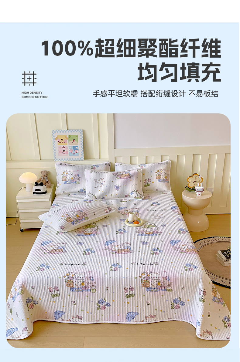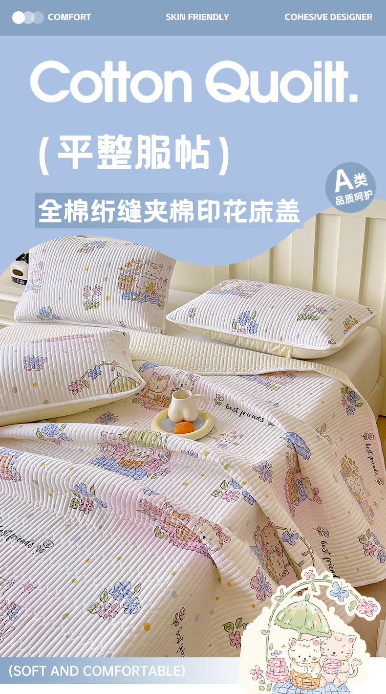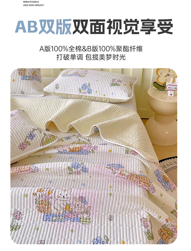 金鑫汇家纺2025新款A类全棉绗缝夹棉印花床盖 喵喵日记