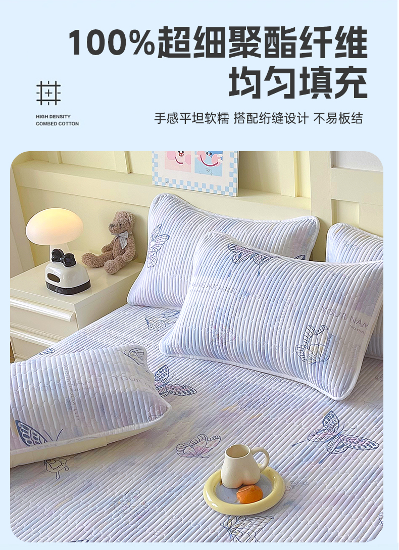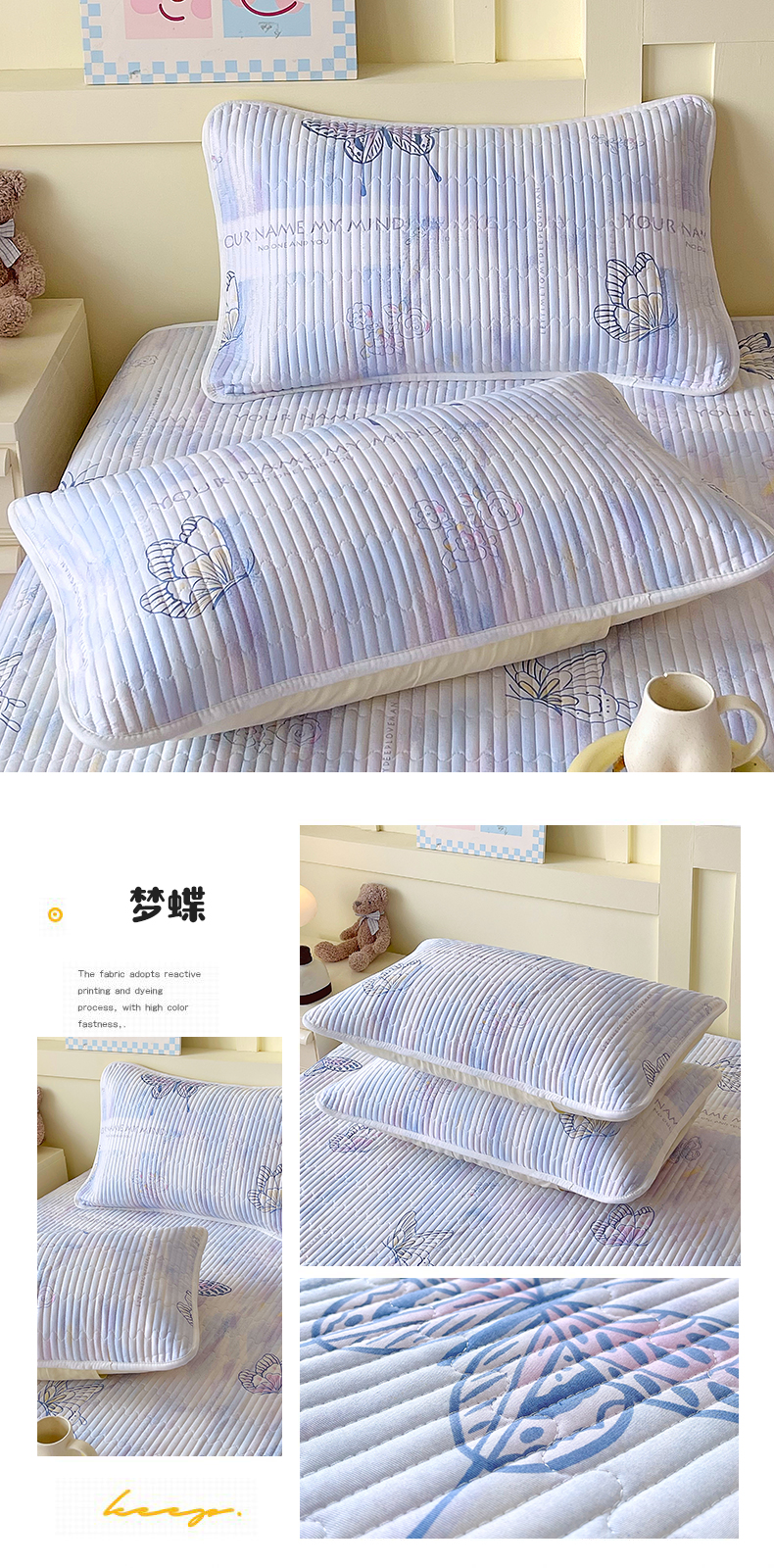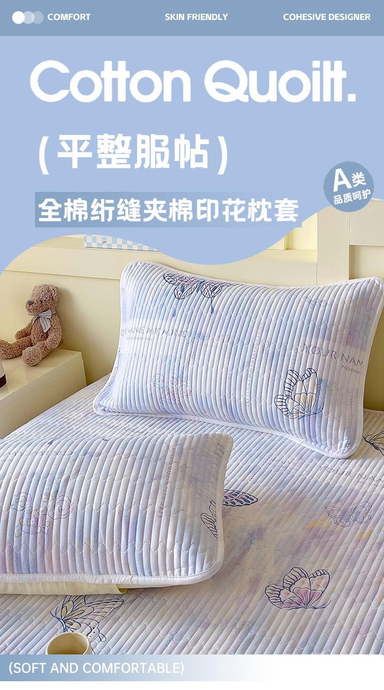 金鑫汇家纺 2025新款A类全绗缝夹棉印花枕套 梦蝶