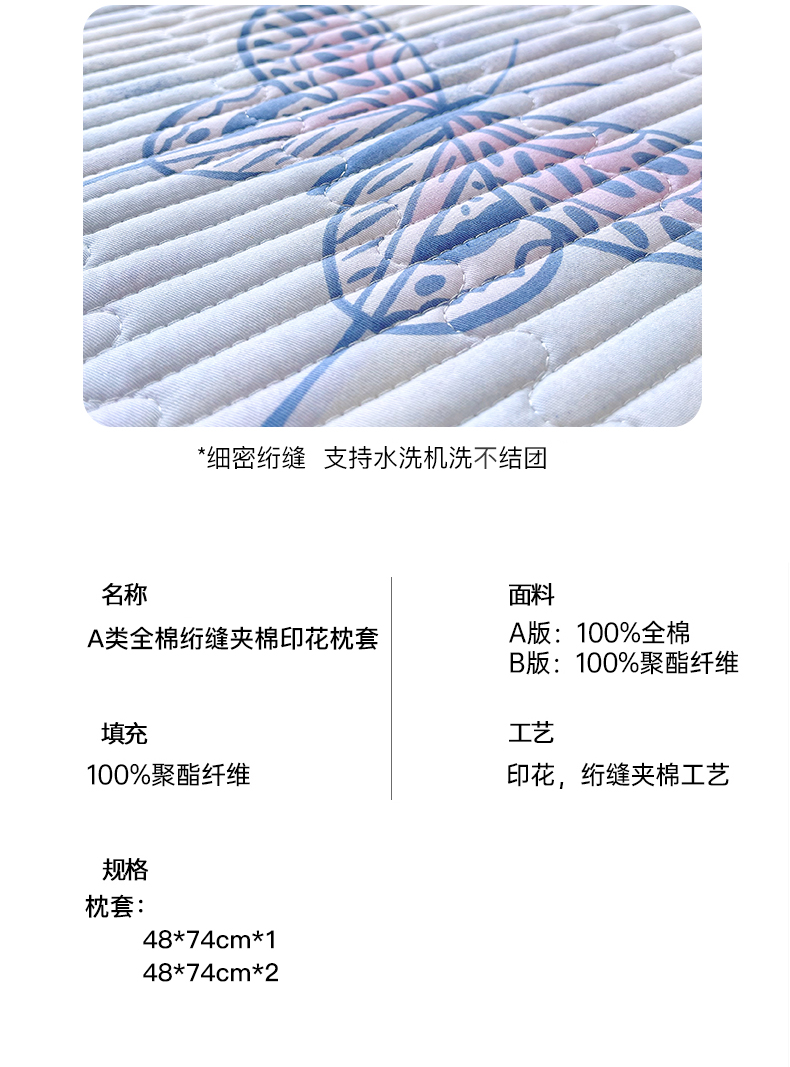 商品名称:金鑫汇家纺 2025新款A类全绗缝夹棉印花枕套 梦蝶