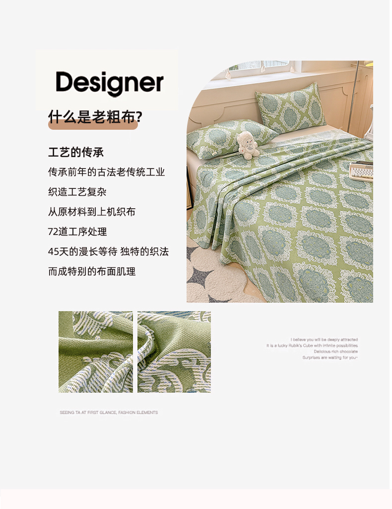 • 91家纺网 家纺一手货源 找家纺 爱彼家纺  2025新款锦柔老粗布席子凉席床单热卖花型 欧式灰
