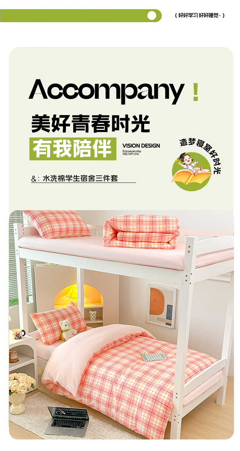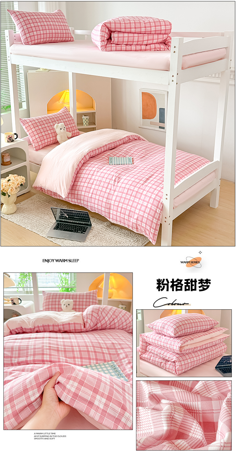 商品名称:梓之赫 2025新款学生季宿舍三件套 粉格甜梦