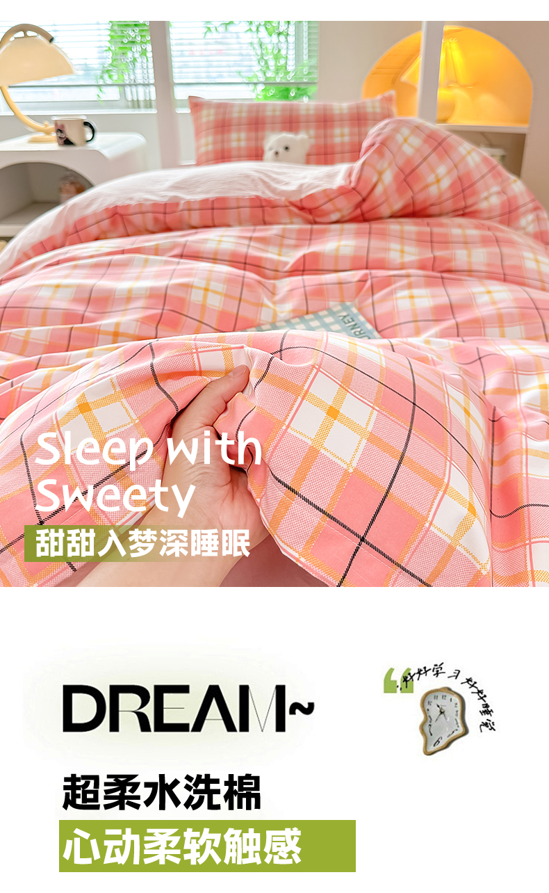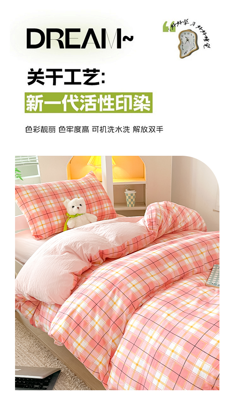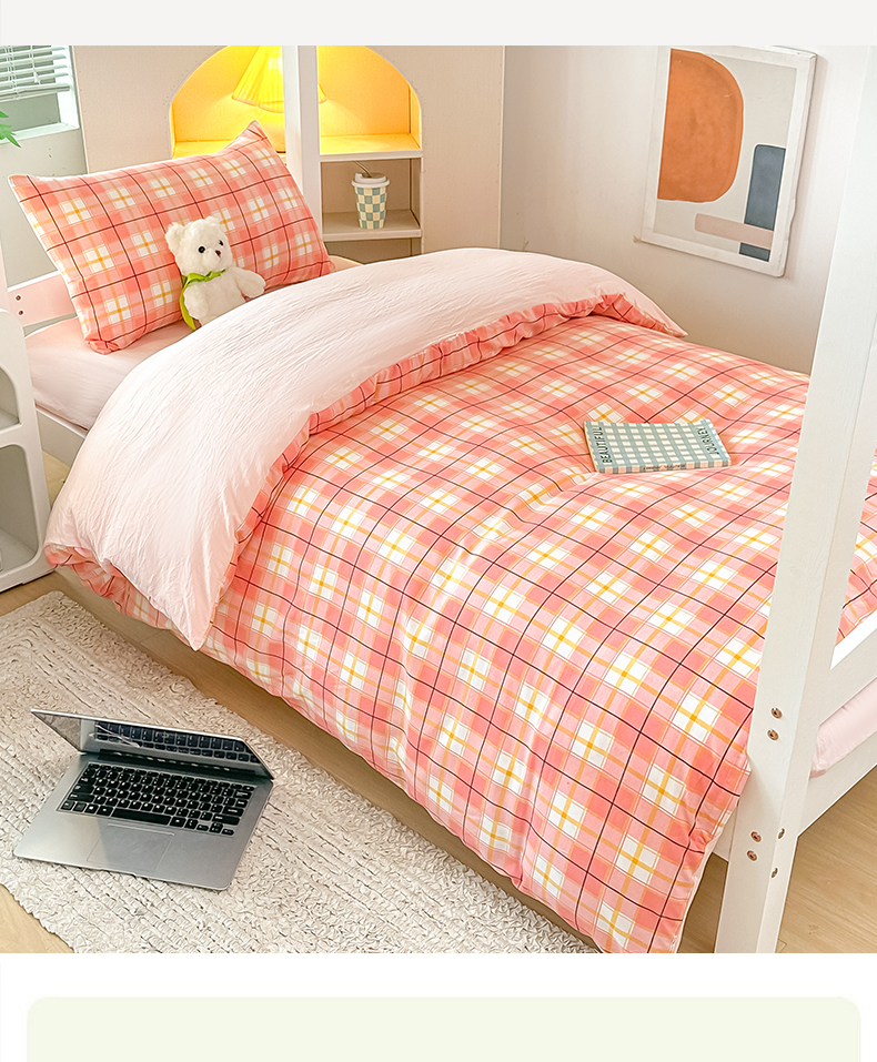 梓之赫 2025新款学生季宿舍三件套 粉格甜梦