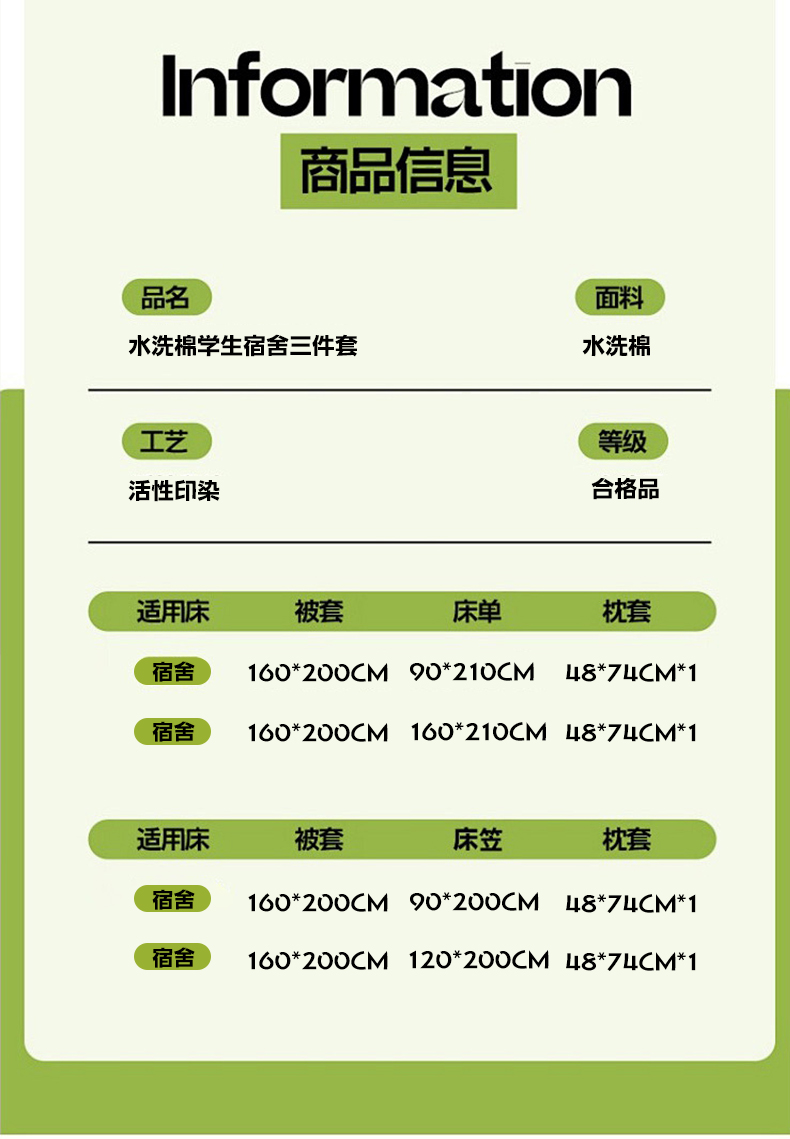 被套1.6*2 床单90*2.1 枕套48*74*1