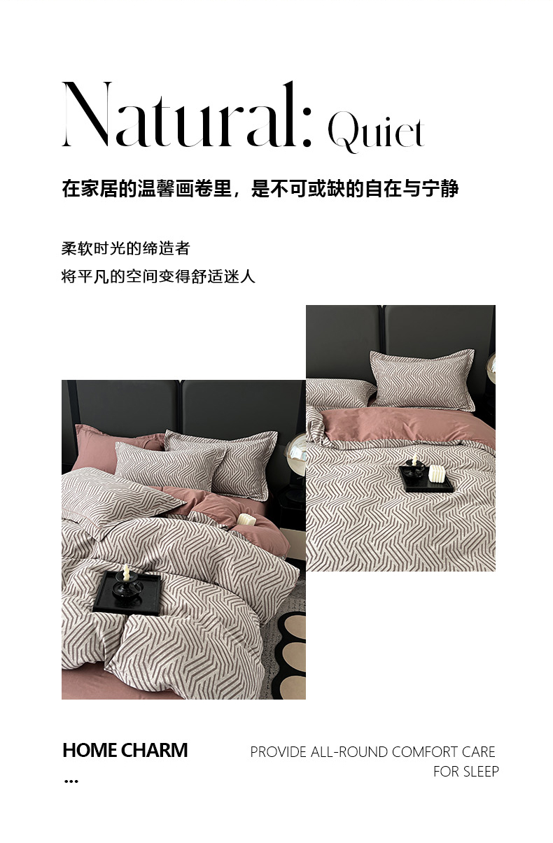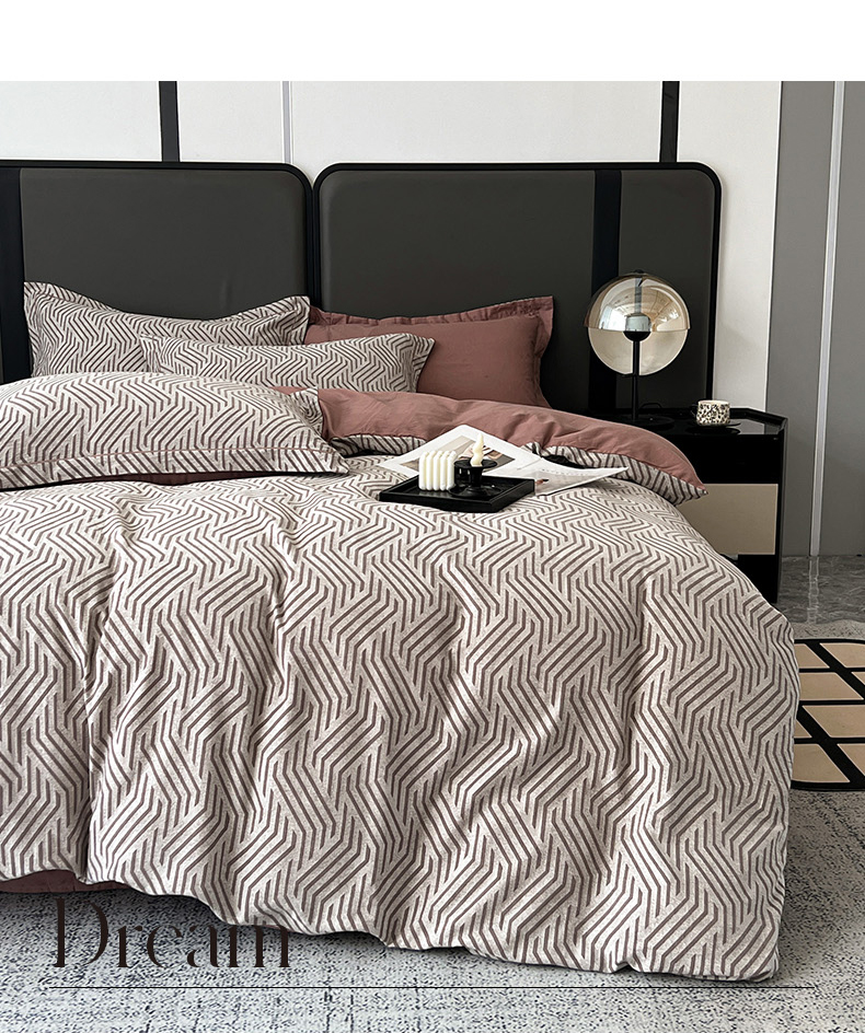 当前位置: 91家纺网 > 商品网购 > 床品套件 > 四件套 > 全棉普通四件套 > 锦彩家居 2025新款A类60支全棉纯棉色织提花四件套-复古风系列 简雅几何-豆沙