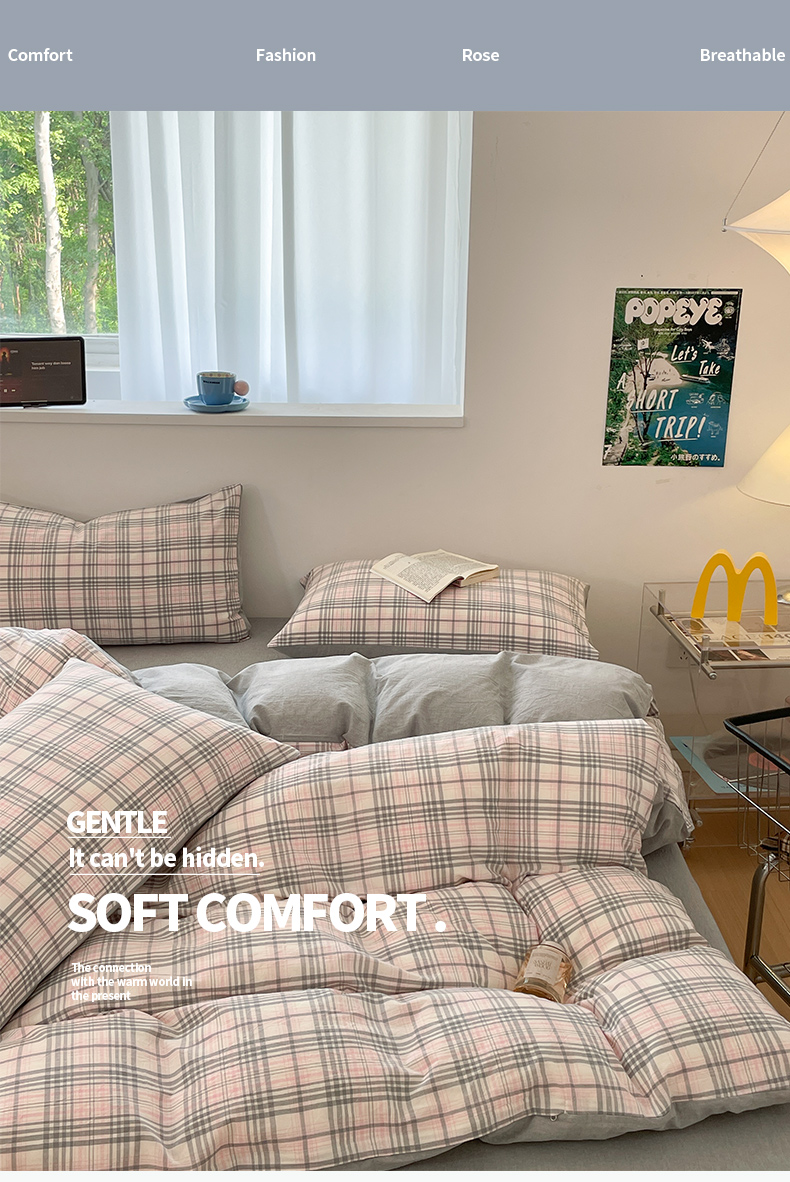 当前位置: 91家纺网 > 商品网购 > 床品套件 > 四件套 > 水洗棉四件套 > ab家纺 2025新款40支色织a类全棉水洗棉四件套 觅果-粉