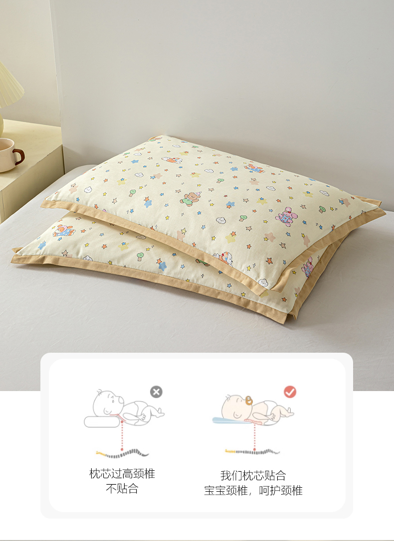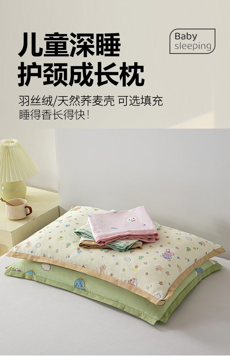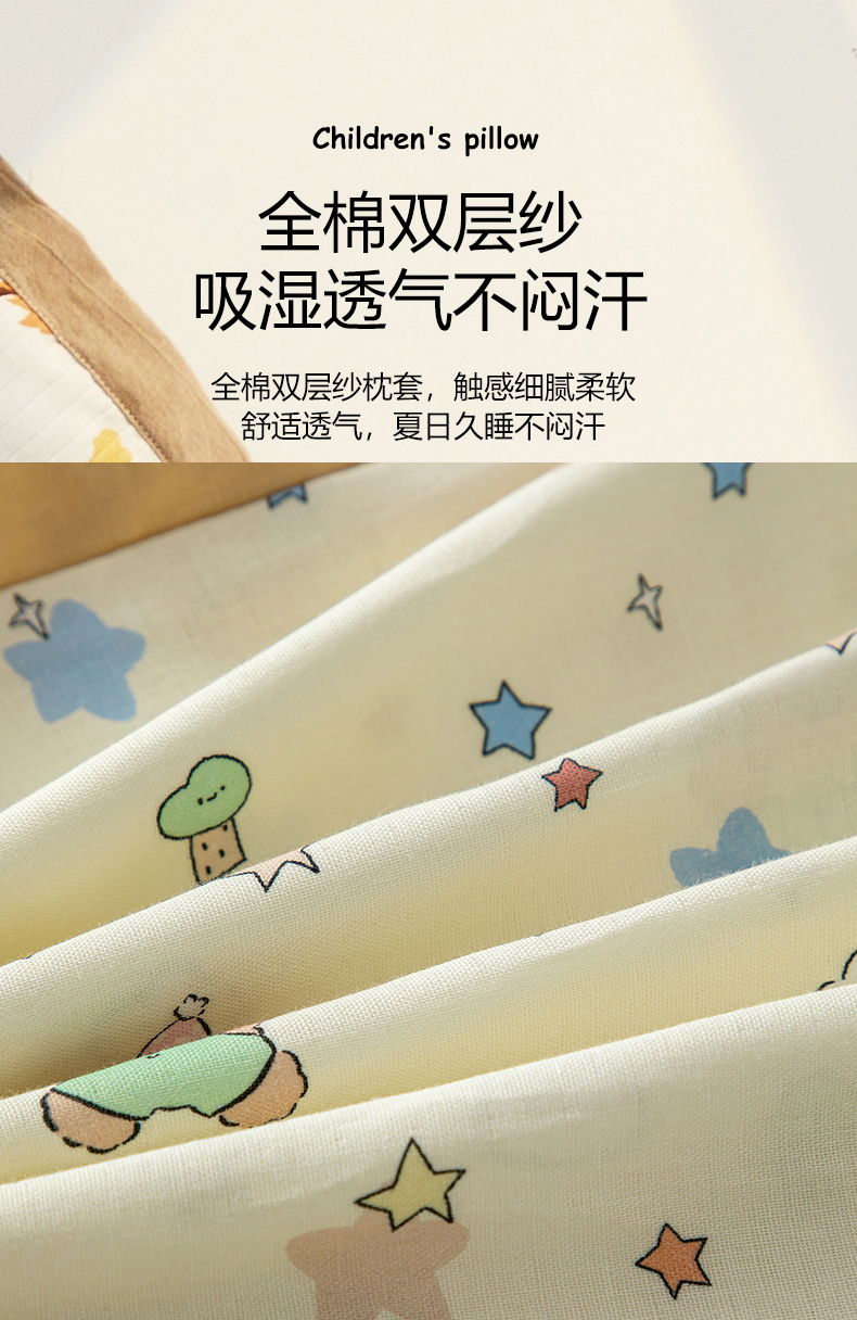 商品名称:(总)大熊枕芯 2025新款全棉双层纱儿童荞麦枕 羽丝绒枕