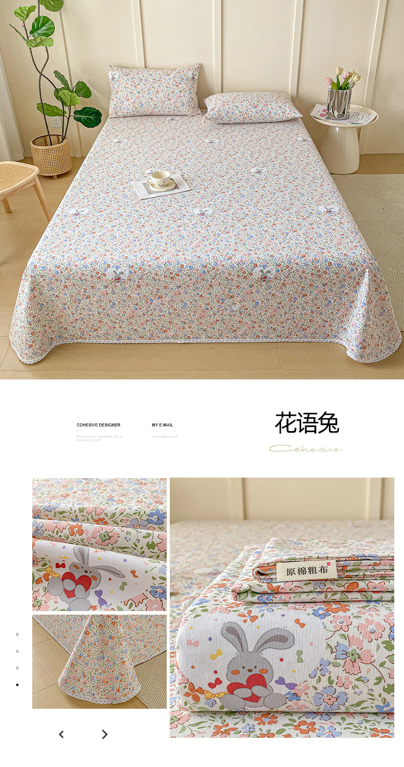 商品名称:棉乐町2025新款花边款老粗布床单 花语兔