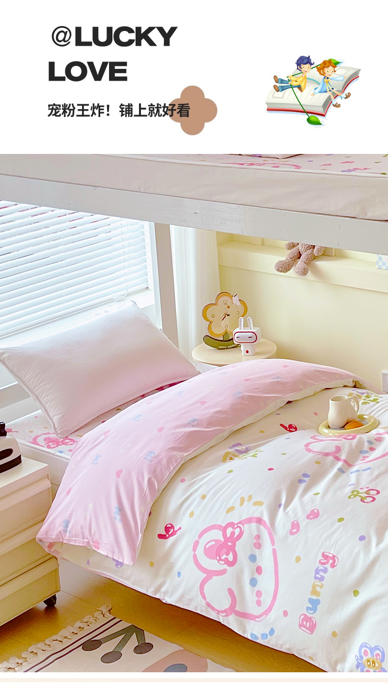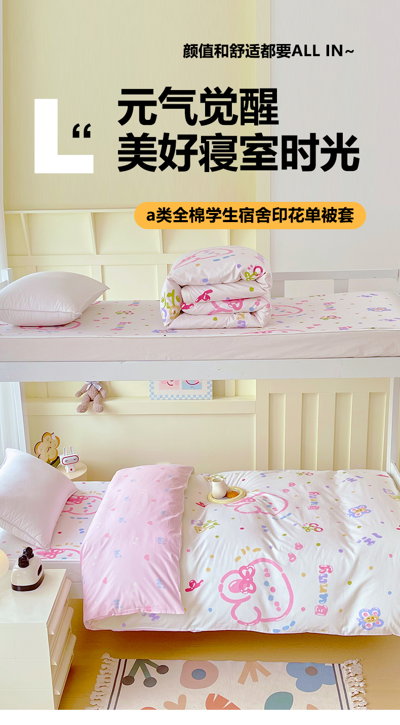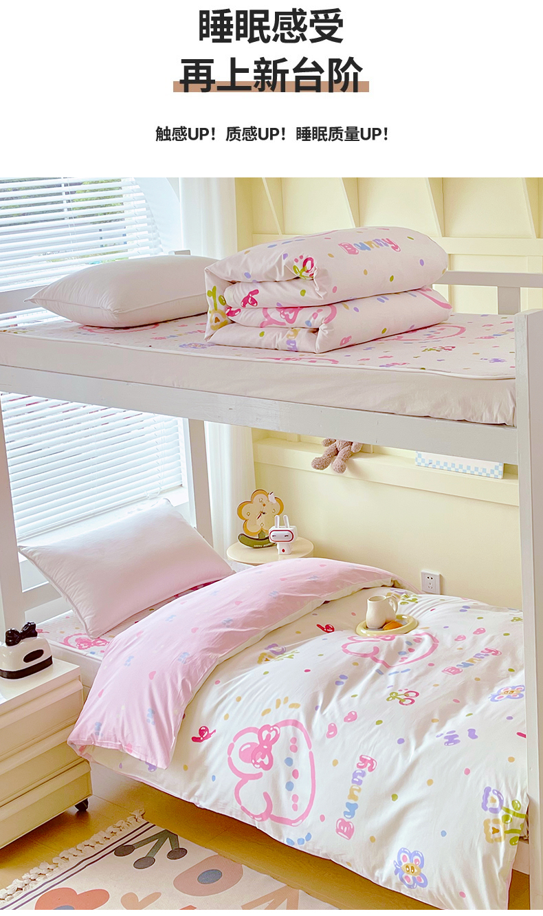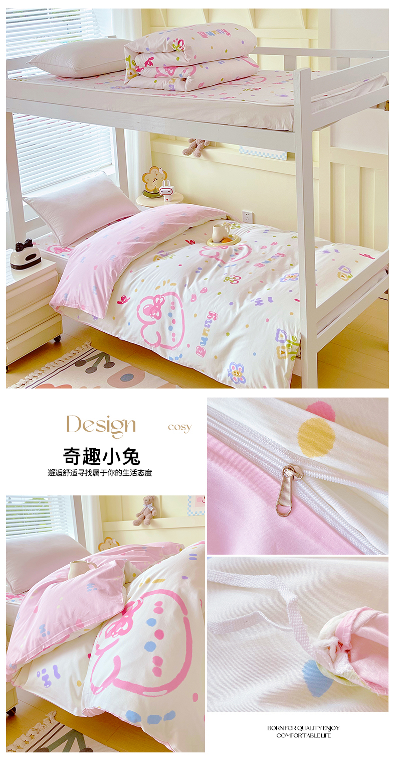 当前位置: 91家纺网 > 商品网购 > 床品套件 > 四件套 > 全棉普通四件套 > 金鑫汇家纺2025新款全棉纯棉宿舍印花学生宿舍上下铺三件套单被套 奇趣小兔