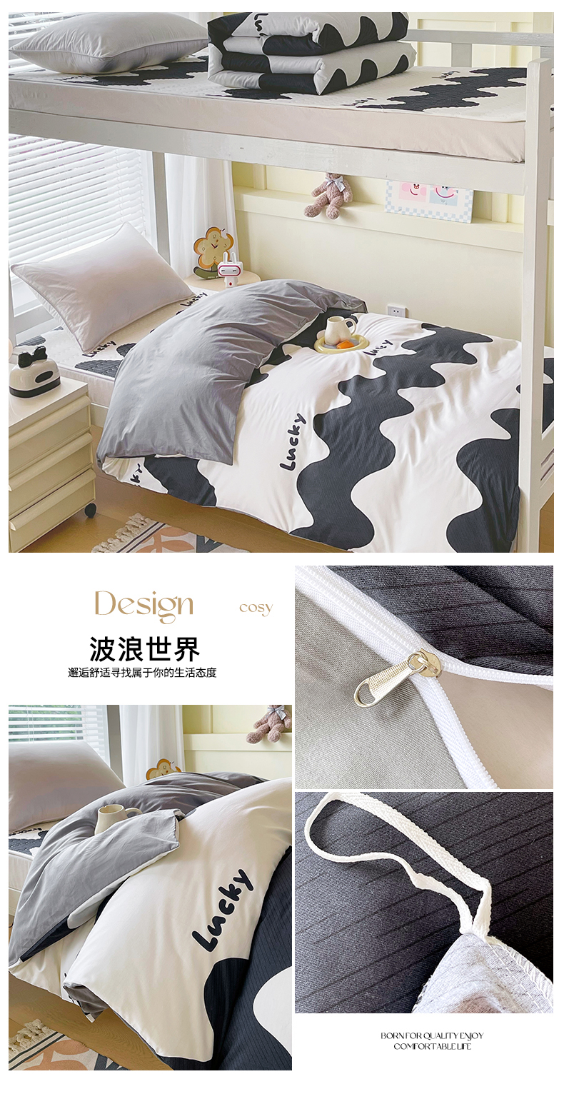 当前位置: 91家纺网 > 商品网购 > 床品套件 > 四件套 > 全棉普通四件套 > 金鑫汇家纺2025新款全棉纯棉宿舍印花学生宿舍上下铺三件套单被套 波浪世界