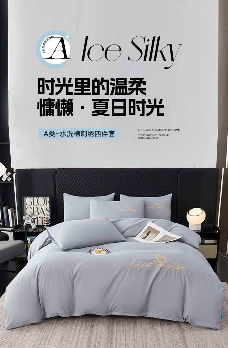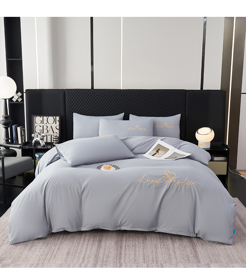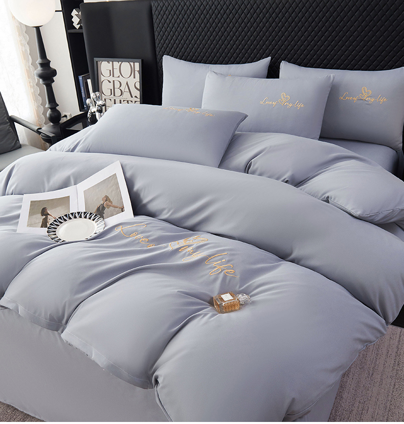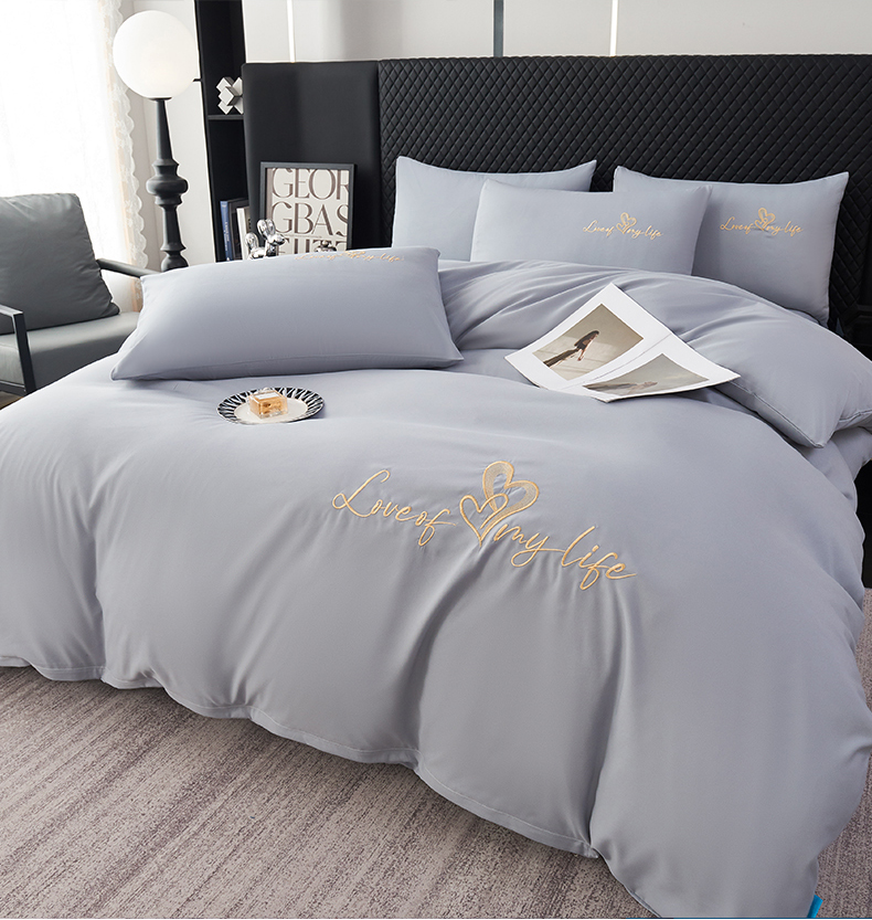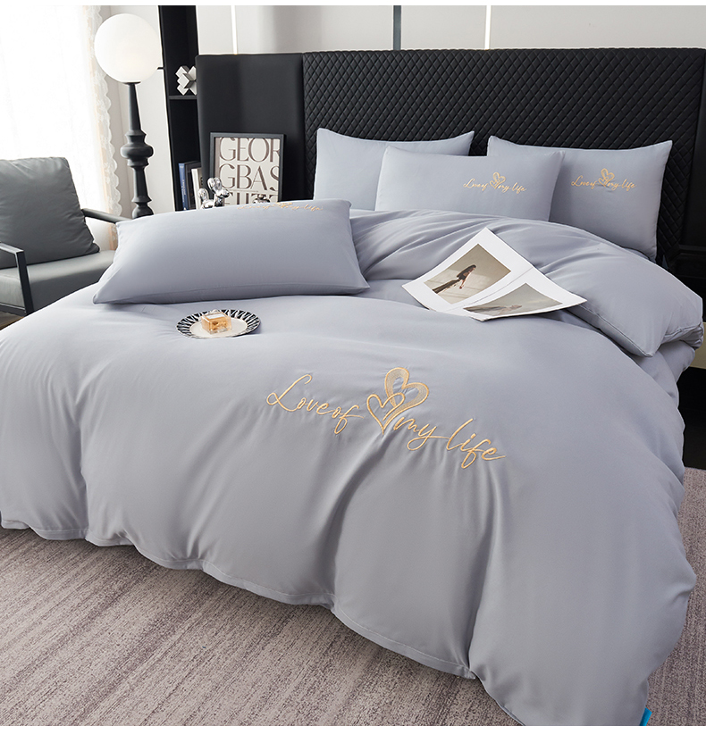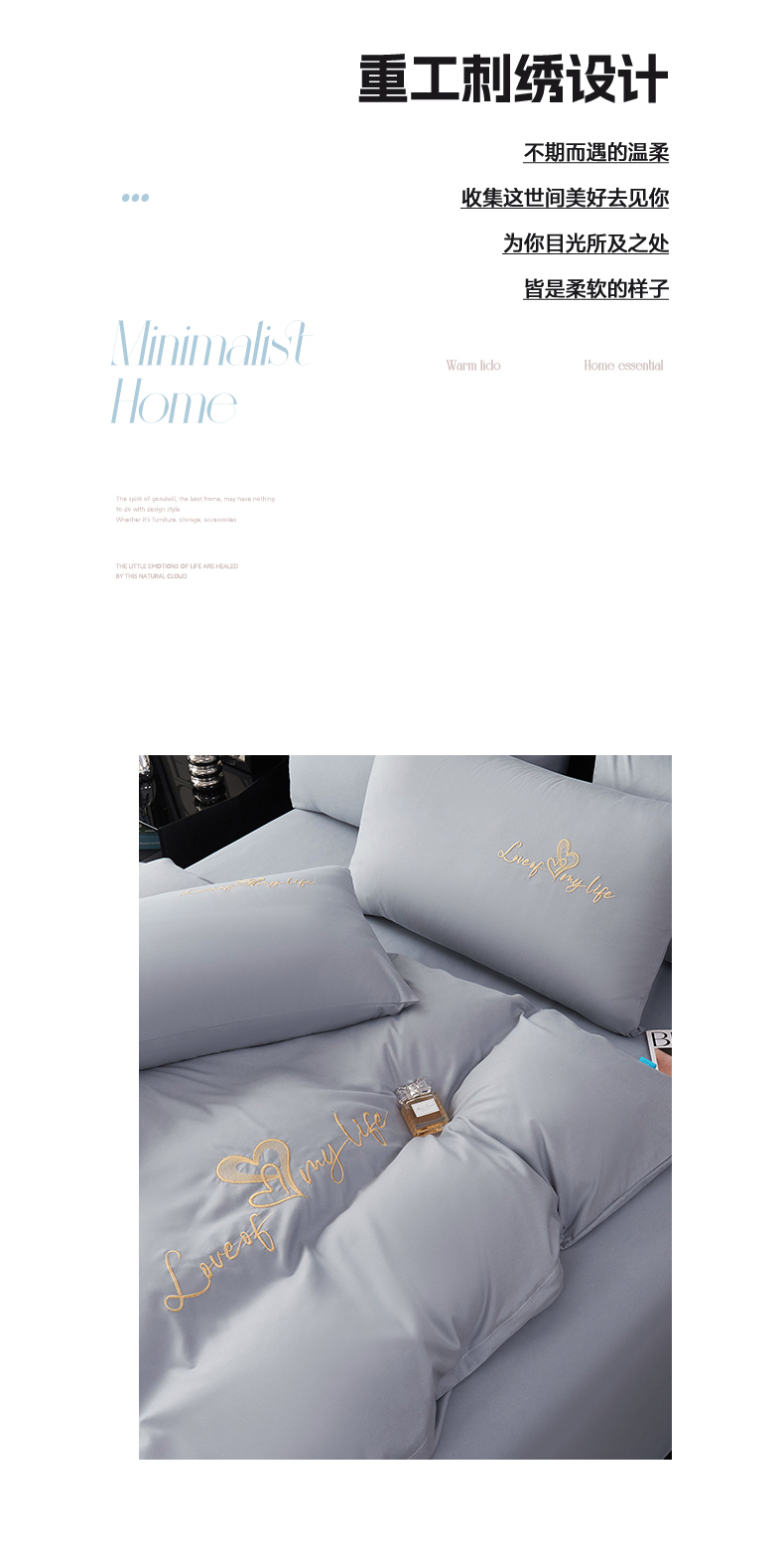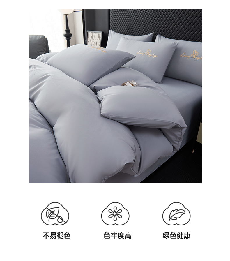 (总)鑫缘家纺 2025新款水洗磨毛纯色绣花四件套(110克),丁香紫,宝石蓝,星空灰,香槟金,石墨灰,浅豆沙