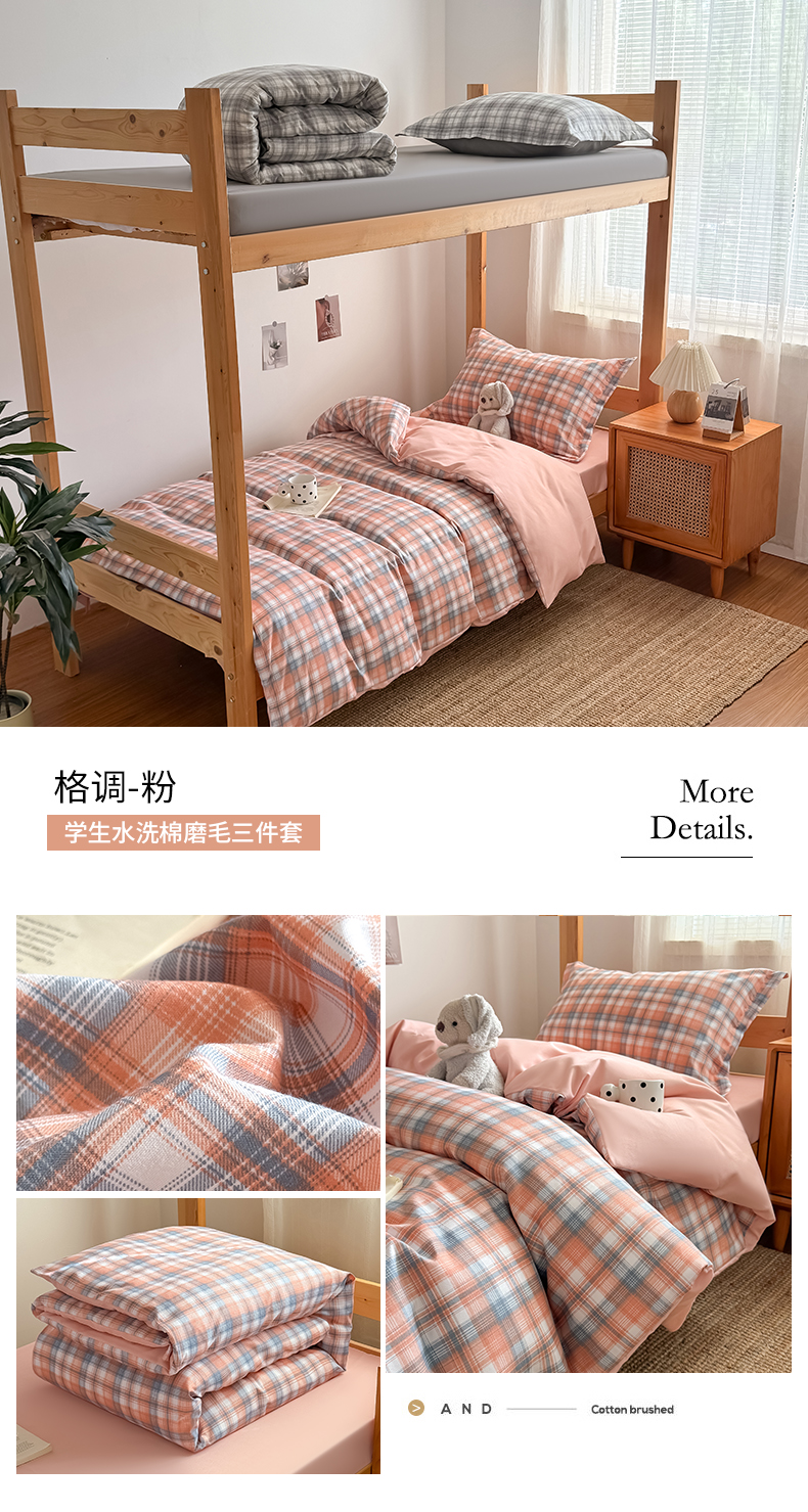 商品名称:卡罗兰 2025新款学生季水洗棉磨毛三件套 格调-粉