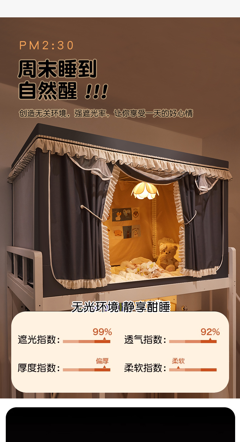 当前位置: 91家纺网 > 商品网购 > 床上用品 > 蚊帐 > 学生蚊帐 > 星际优品 2025新款学生蚊帐遮光床帘植绒环保遮光帘99%遮光-花边款学生蚊帐 花边款-深灰