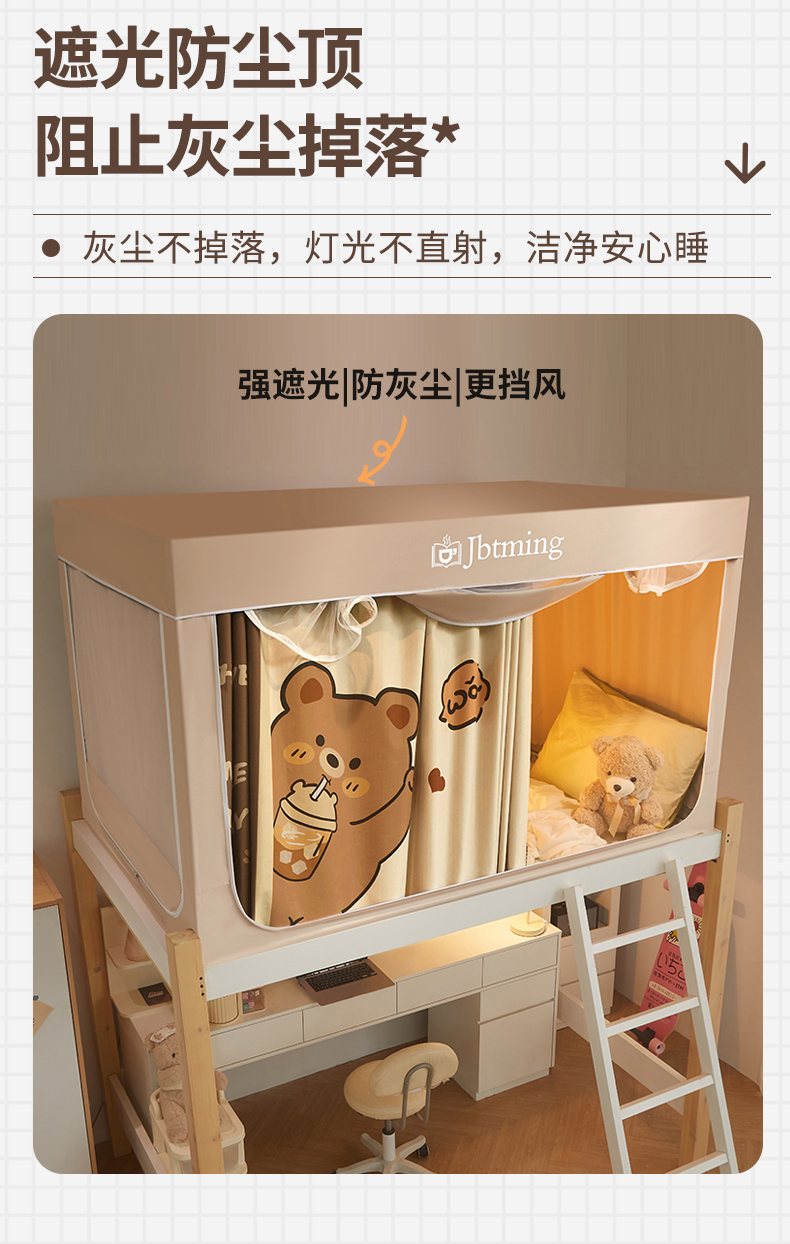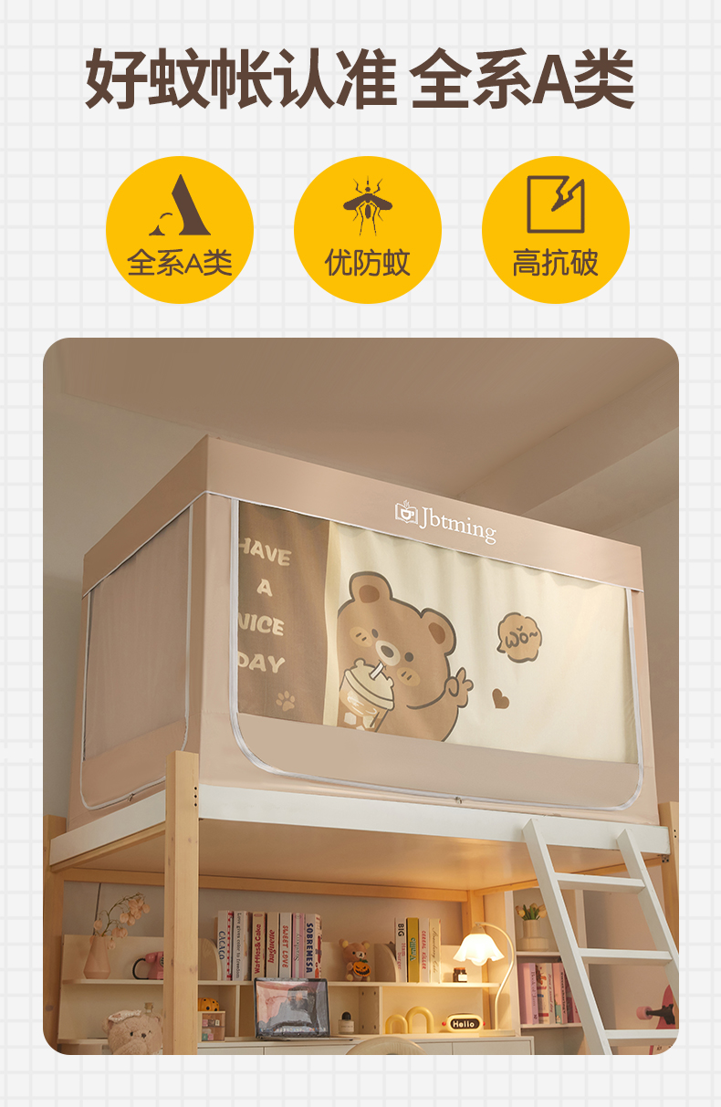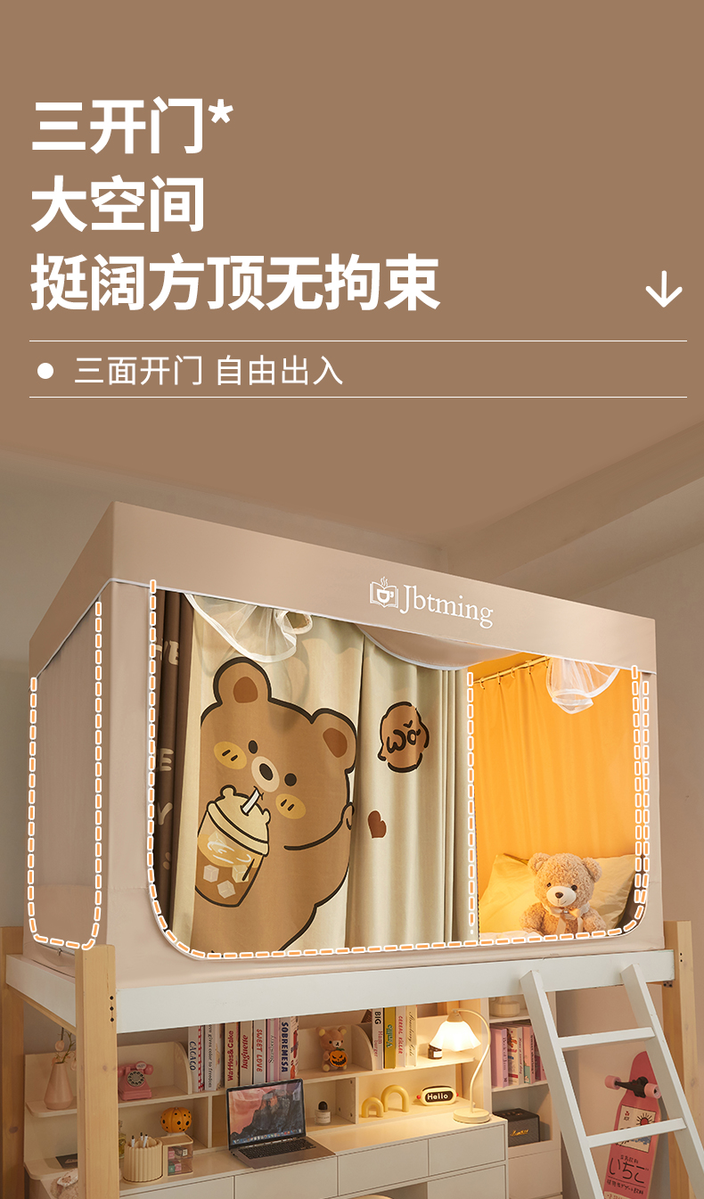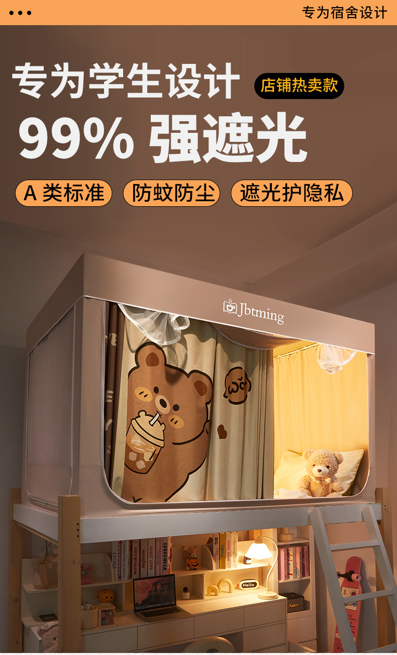 当前位置: 91家纺网 > 商品网购 > 床上用品 > 蚊帐 > 学生蚊帐 > 星际优品 2025新款学生蚊帐遮光床帘植绒环保遮光帘99%遮光-印花款学生蚊帐-一 奶茶熊-米杏