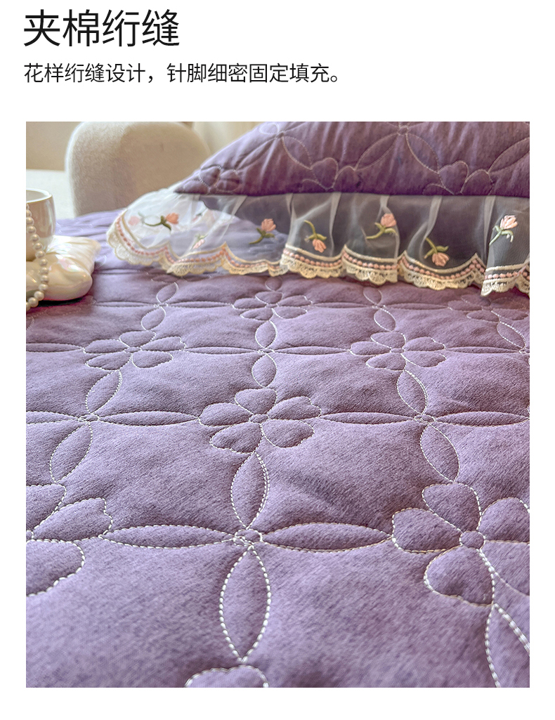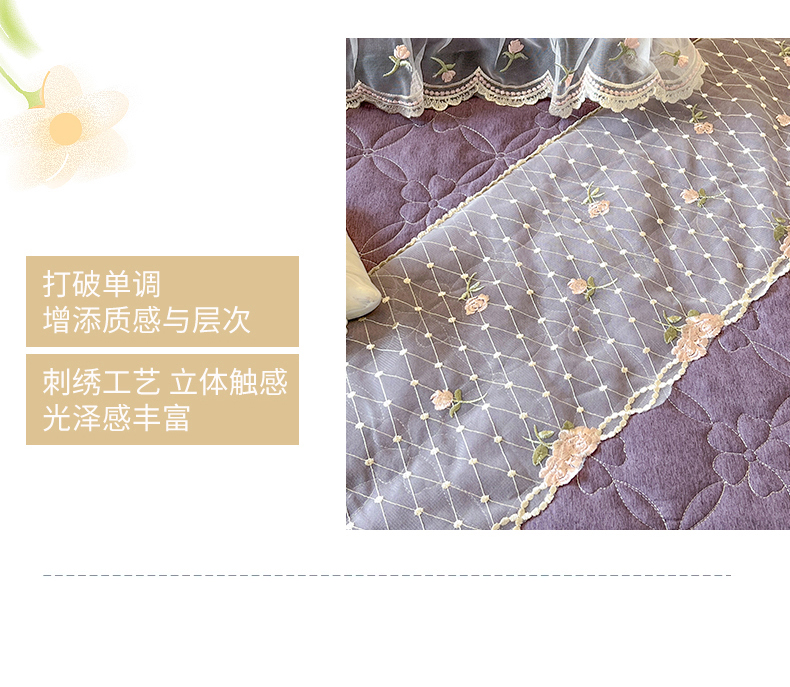 • 91家纺网 家纺一手货源 找家纺 麒豆豆 2025新款色织蕾丝边床裙款床笠-花亦然 花亦然-浪漫紫