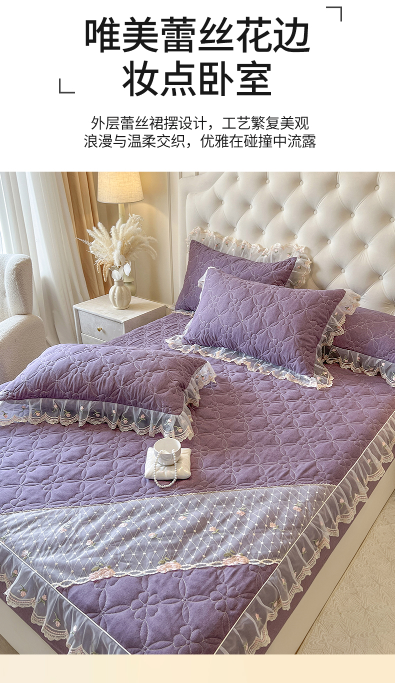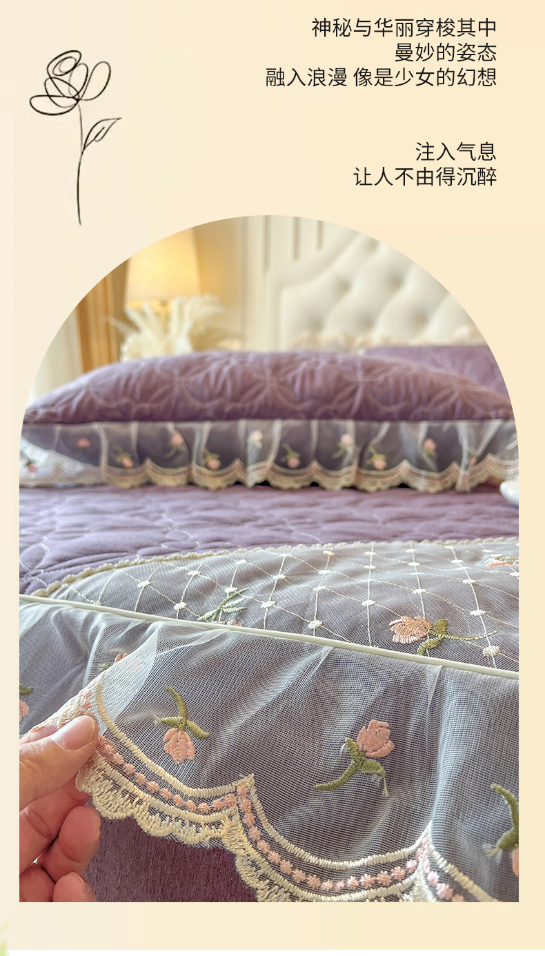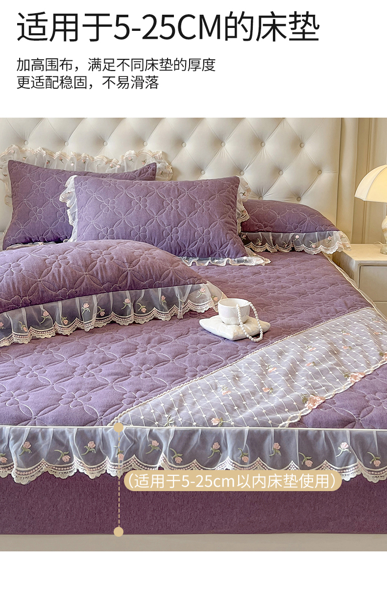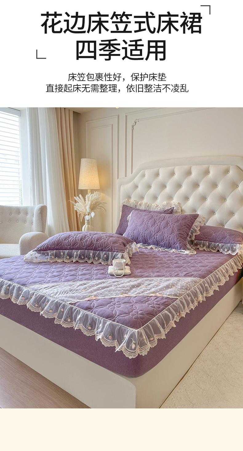 麒豆豆 2025新款色织蕾丝边床裙款床笠-花亦然 花亦然-浪漫紫
