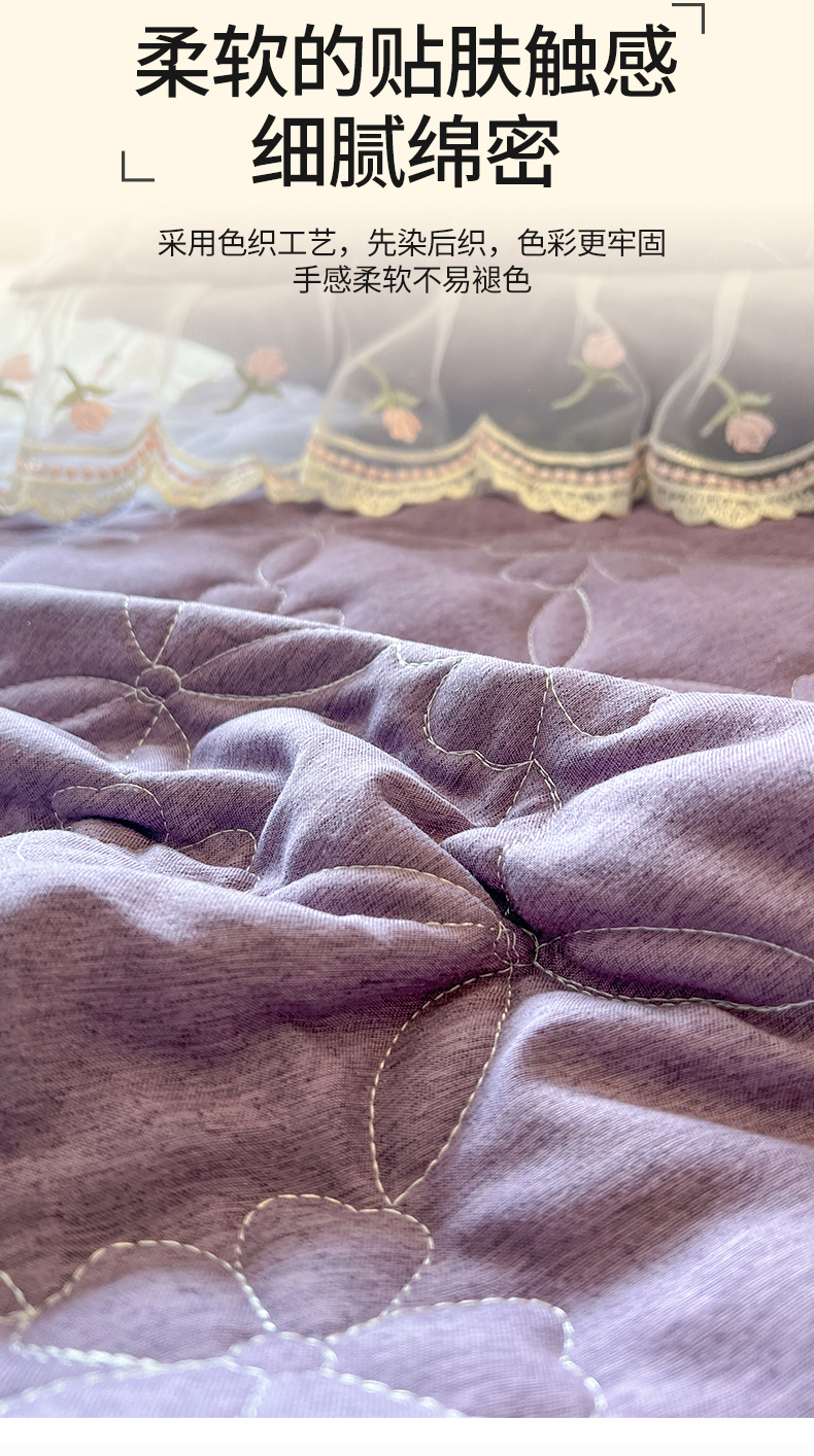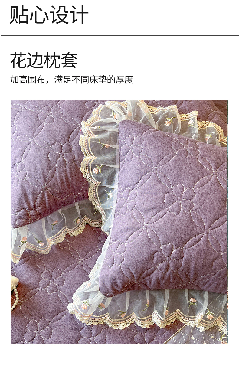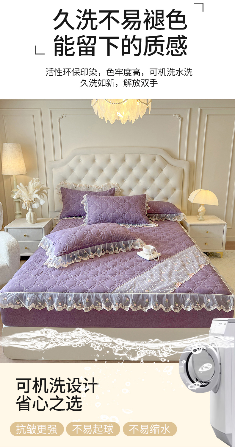 麒豆豆 2025新款色织蕾丝边床裙款床笠-花亦然 花亦然-浪漫紫