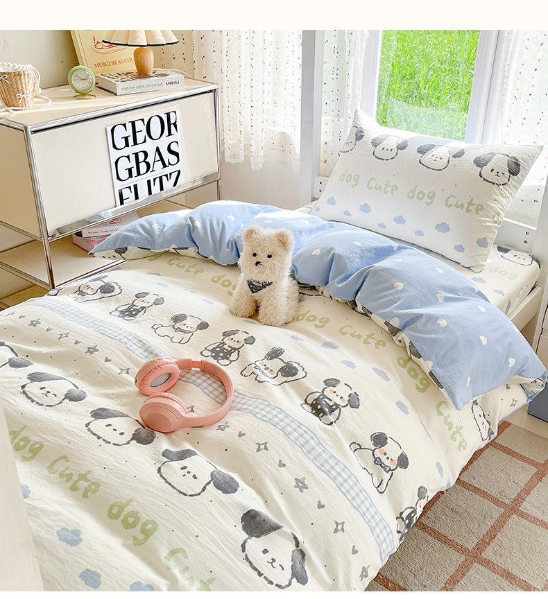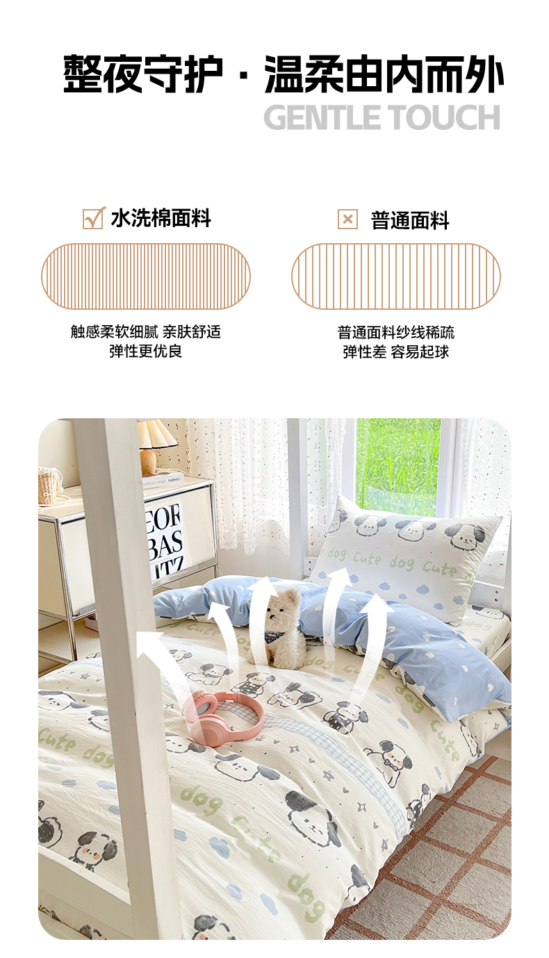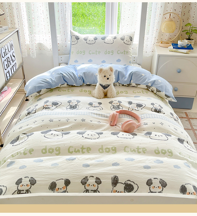 当前位置: 91家纺网 > 商品网购 > 床品套件 > 三件套 > 盛秋家纺 2025新款水洗棉卡通学生小三套套件 欢乐狗+蓝爱心