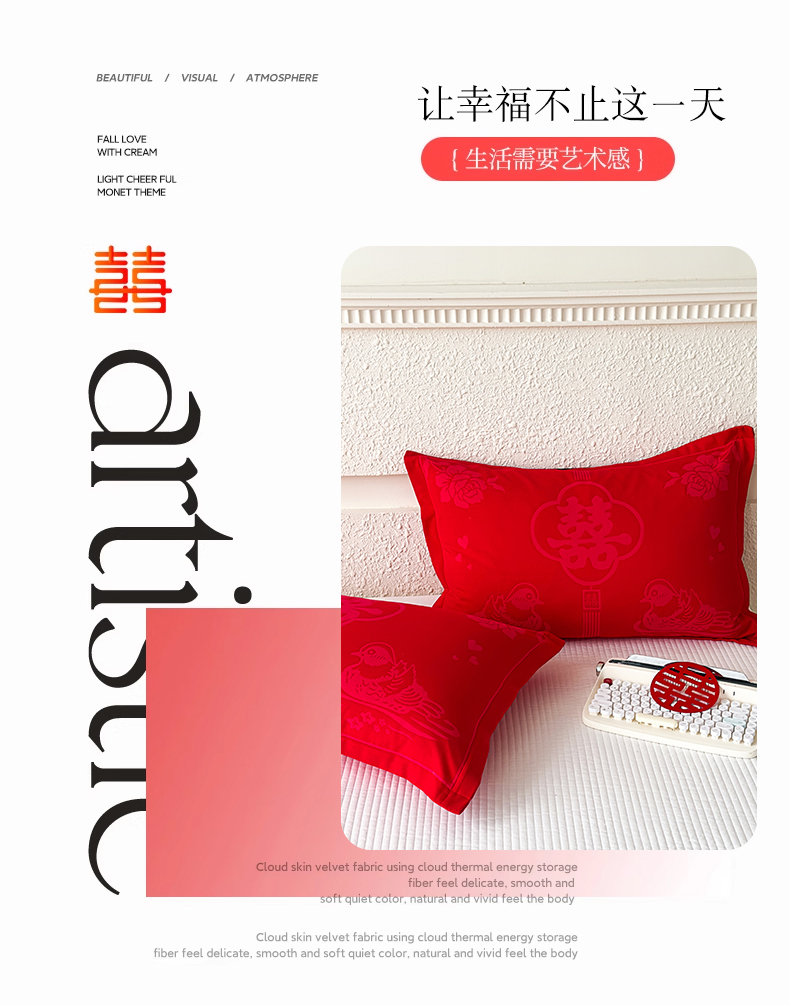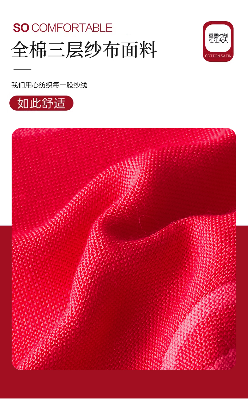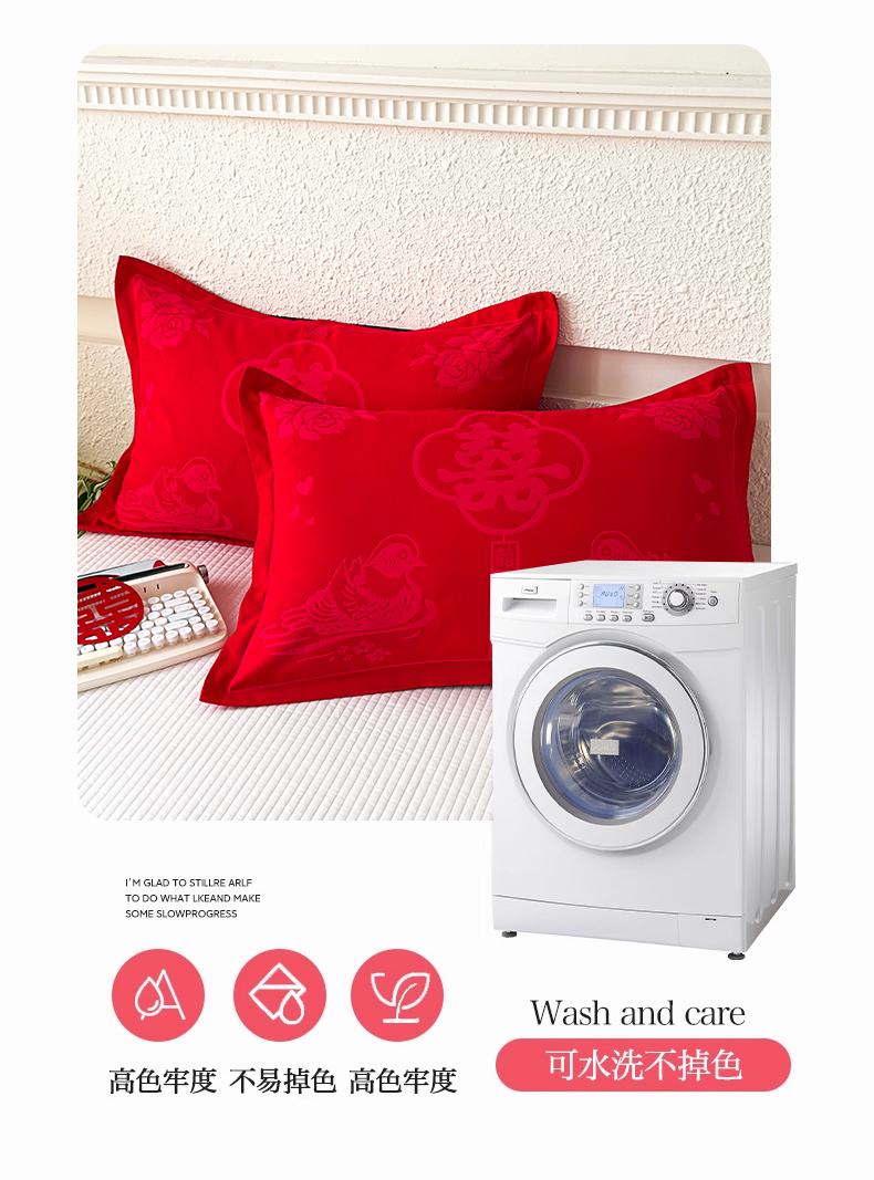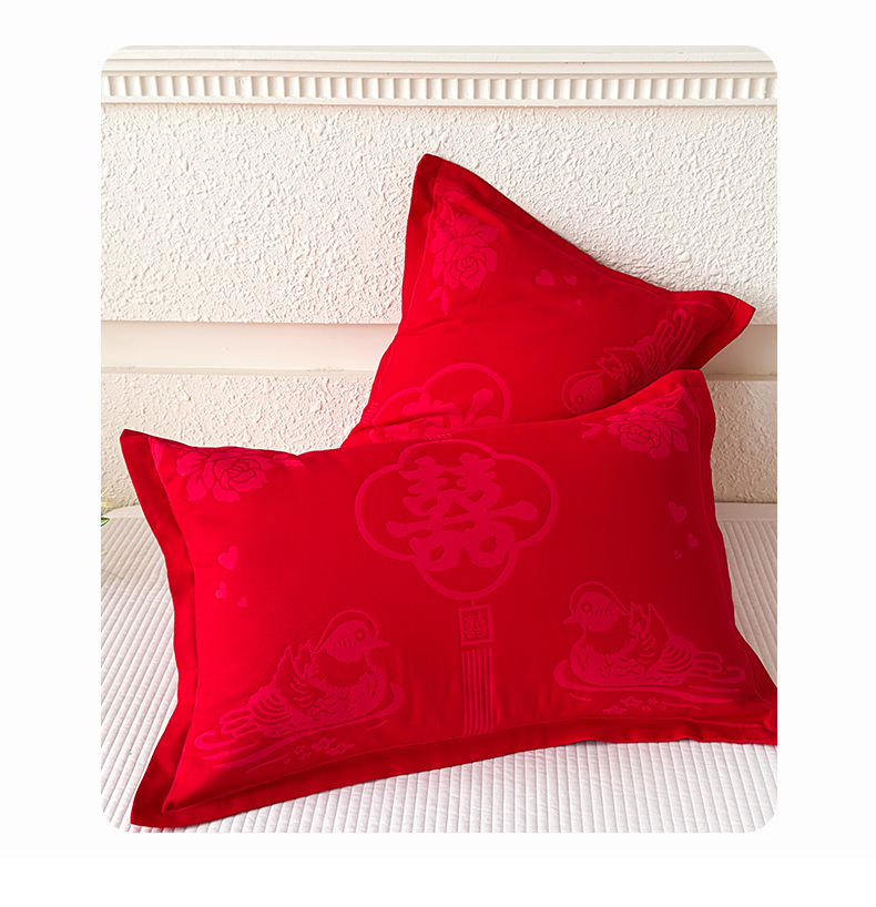 悦然毛巾被 2025新款婚庆大红三层全棉纱布枕套 欢喜鸳鸯