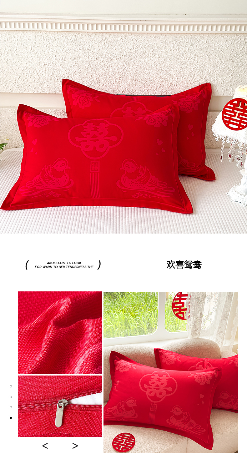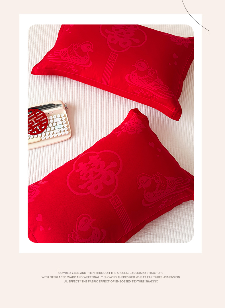 商品名称:悦然毛巾被 2025新款婚庆大红三层全棉纱布枕套 欢喜鸳鸯