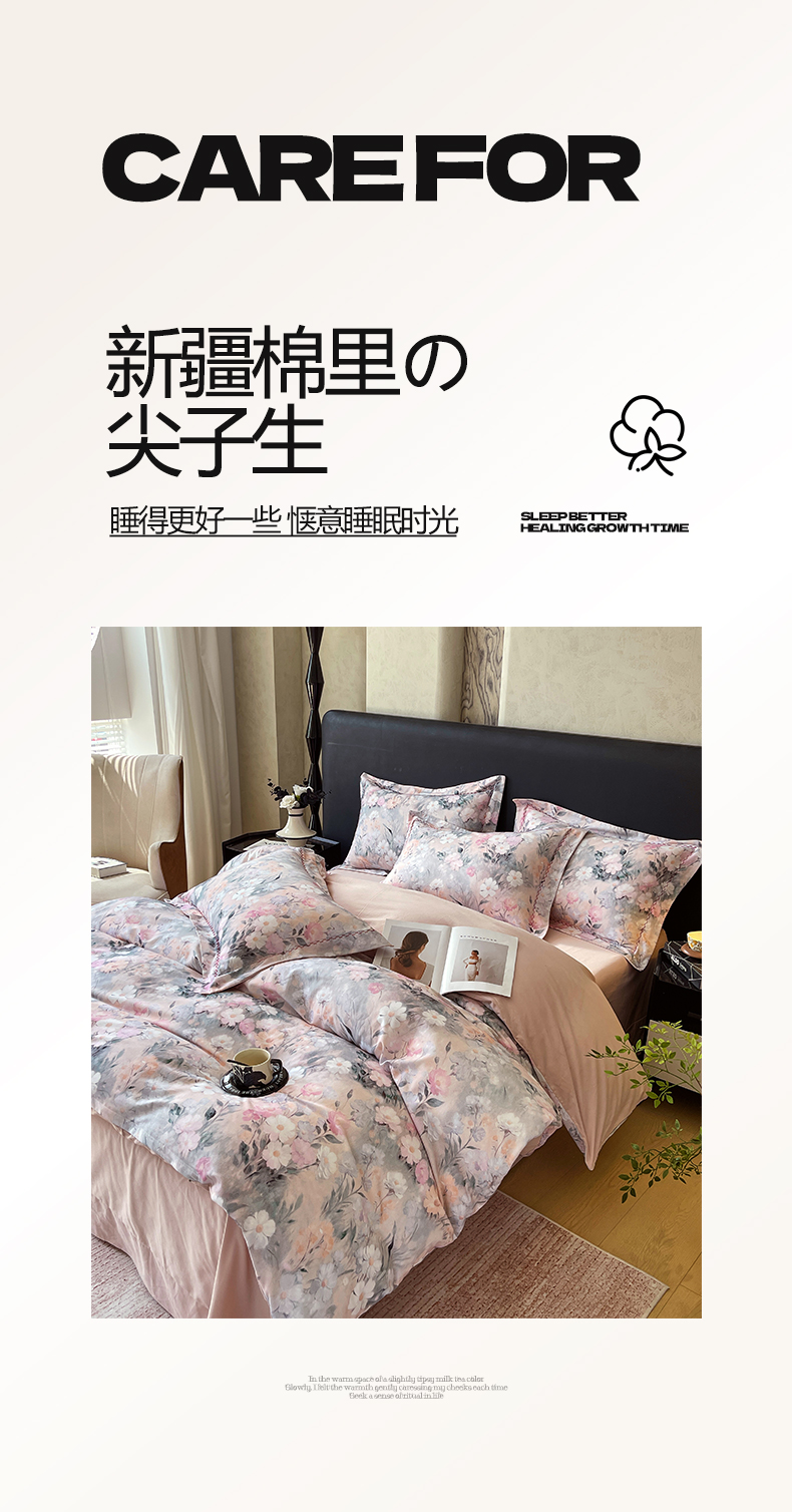 商品名称:帅露家纺 2025新款升级疆大白全棉加厚生态磨毛四件套 朝歌-粉