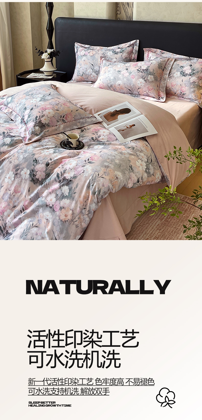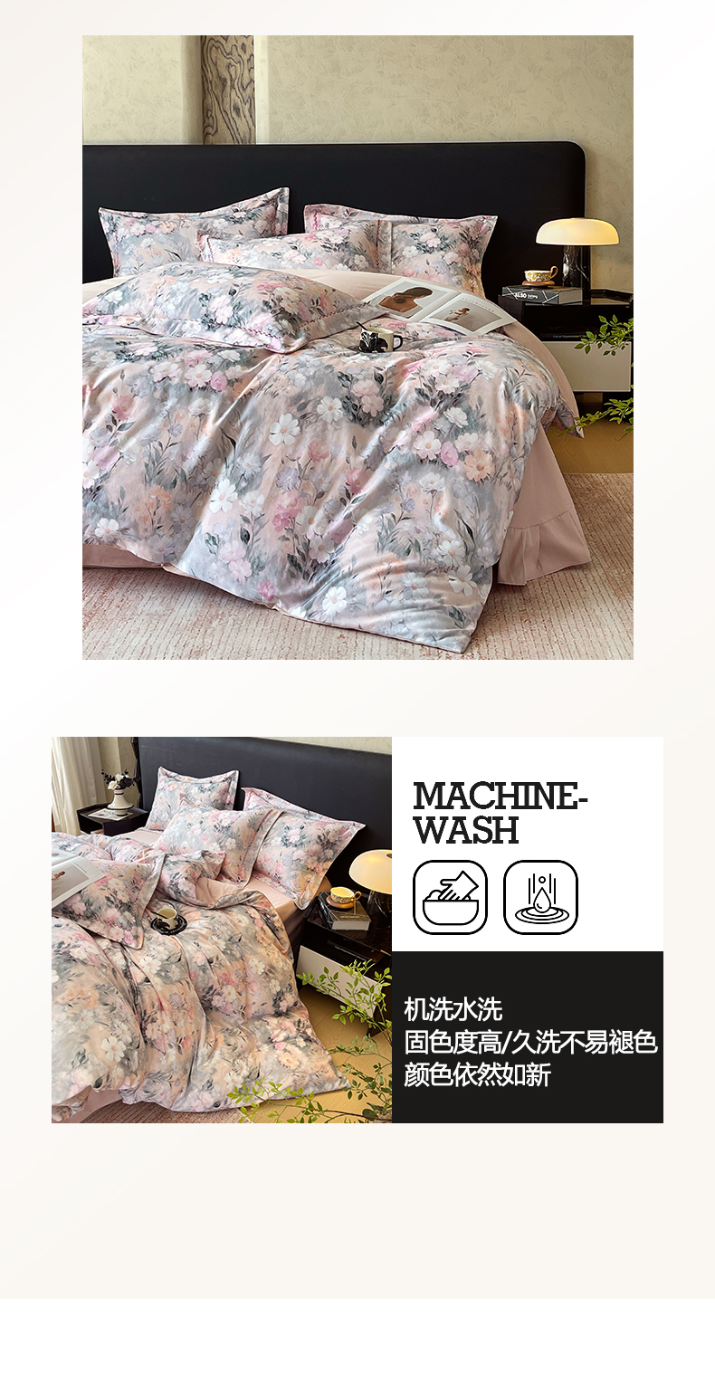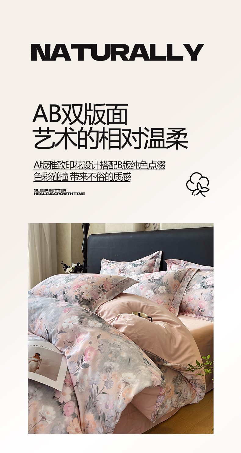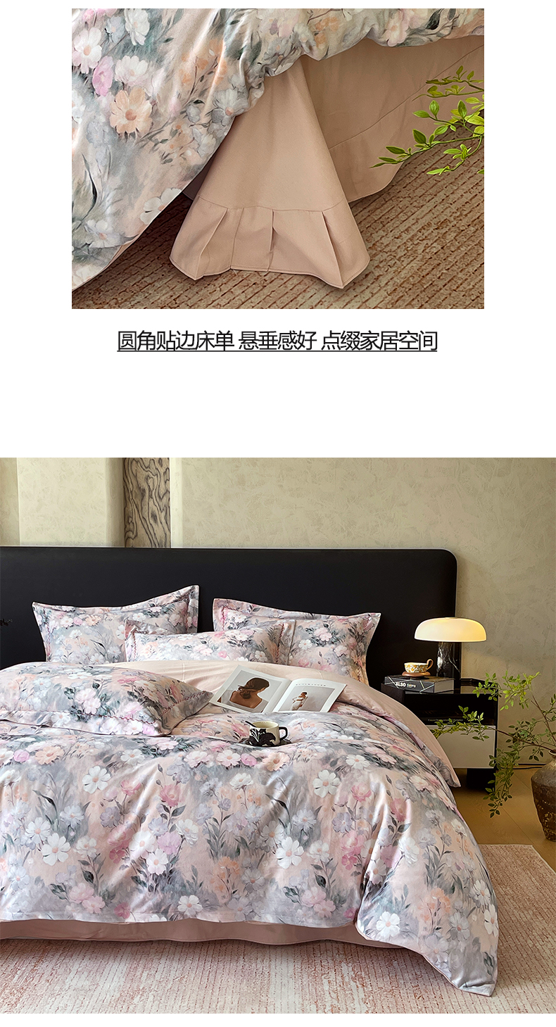 (总)帅露家纺 2025新款A类棉麻活性印染四件套系列,花间意境-红,花间意境-灰,花香满园-红,素锦-咖,香叶时代,映霜-灰,映霜-绿