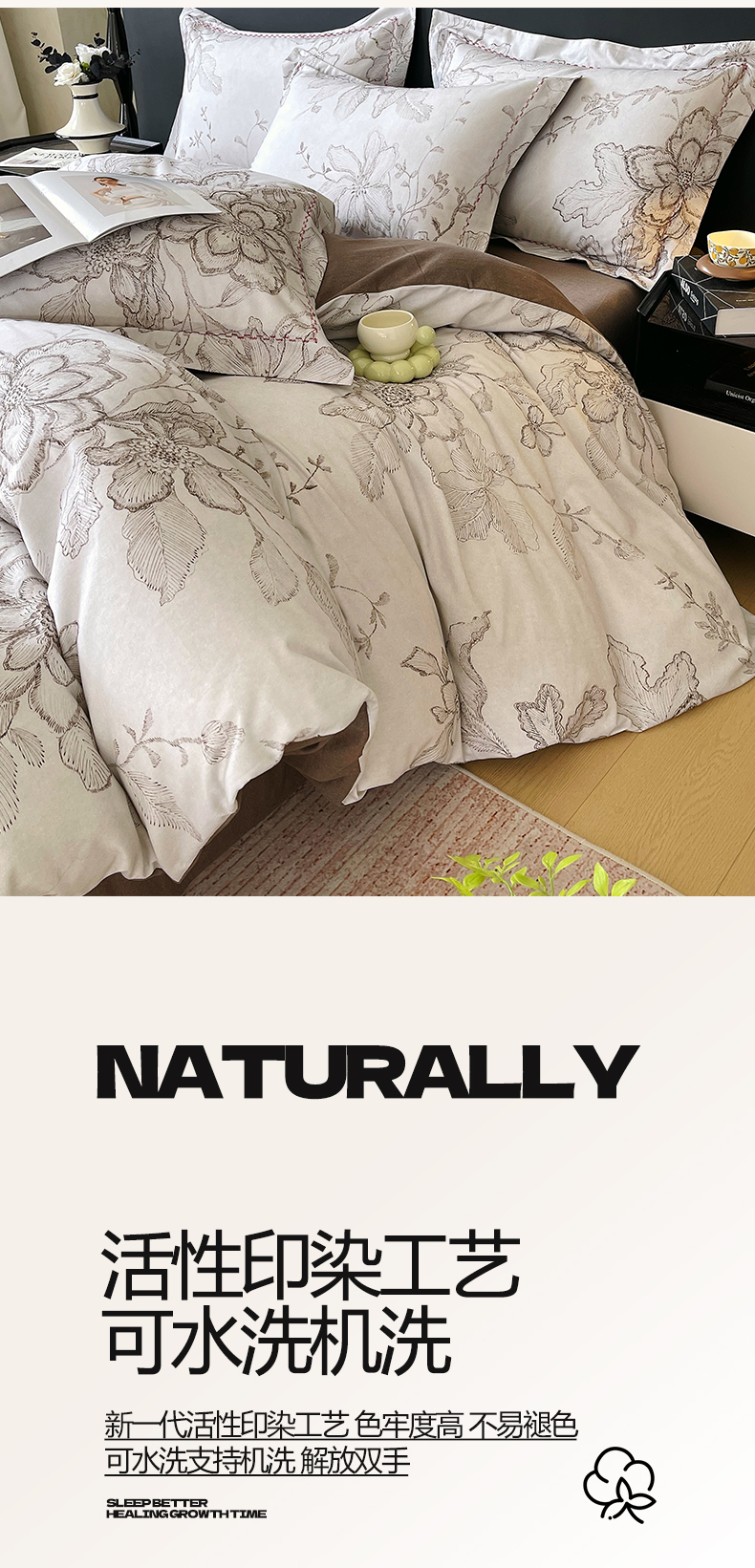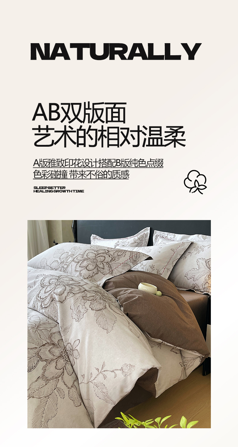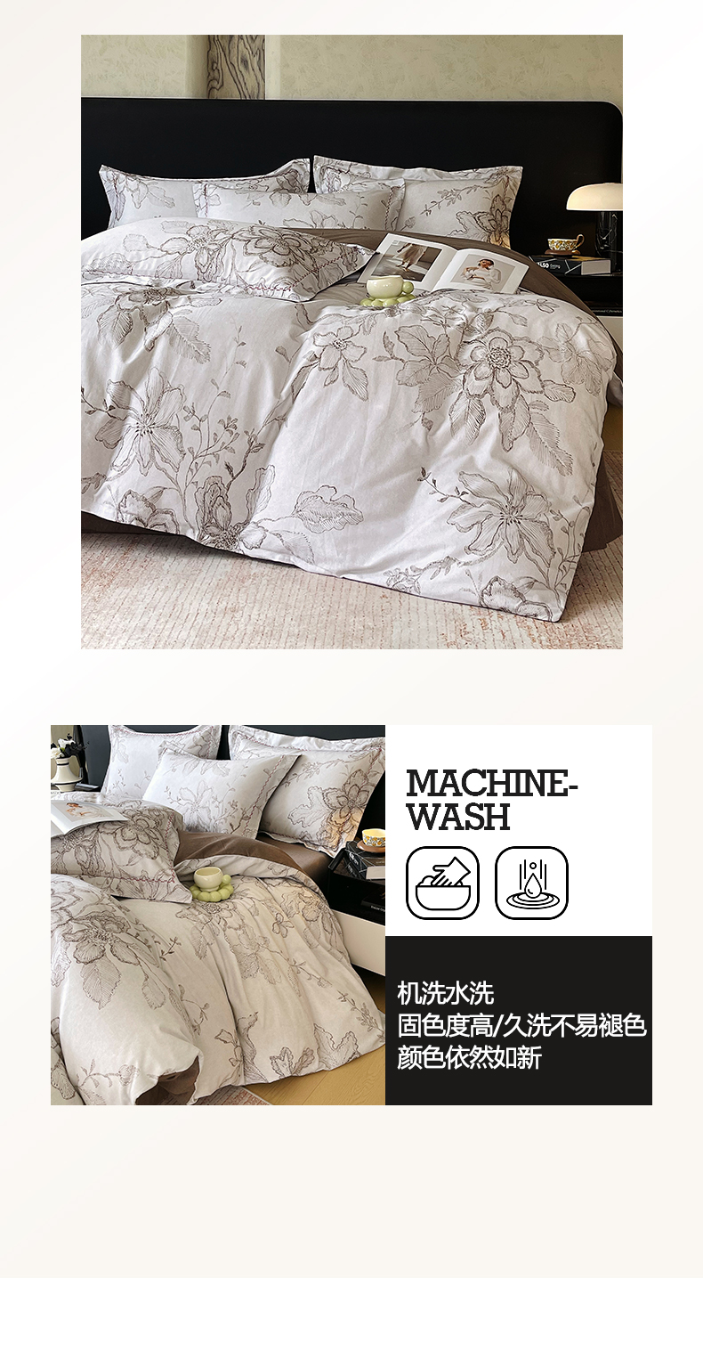 (总)帅露家纺 2025新款A类棉麻活性印染四件套系列,花间意境-红,花间意境-灰,花香满园-红,素锦-咖,香叶时代,映霜-灰,映霜-绿