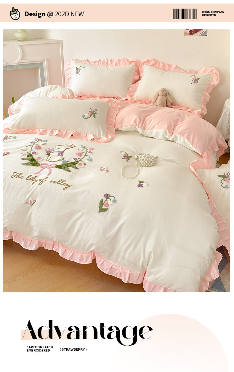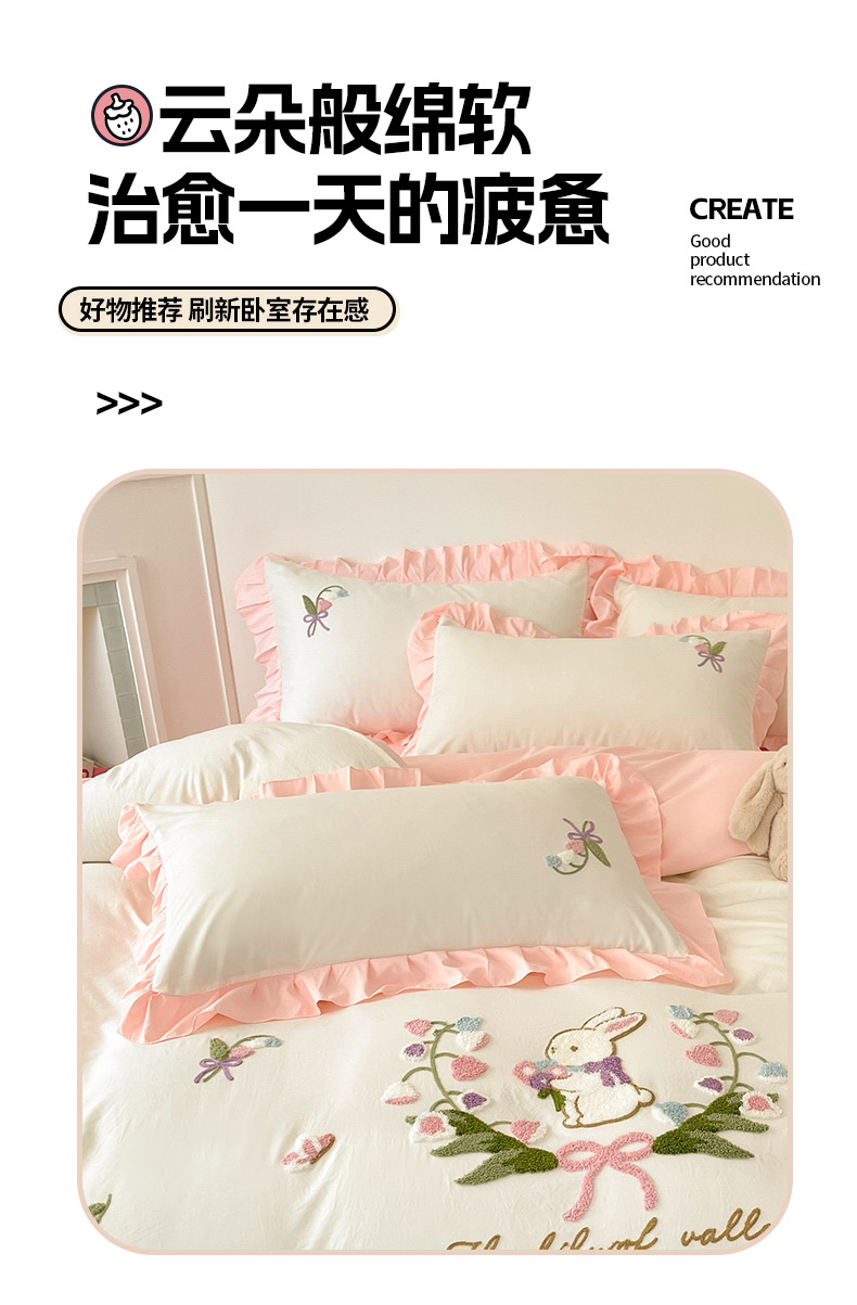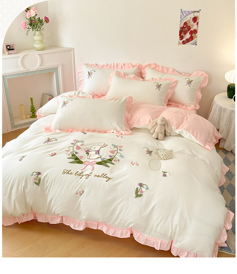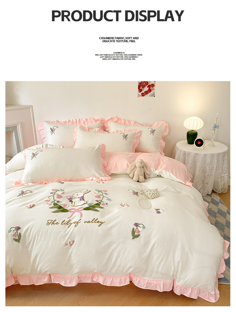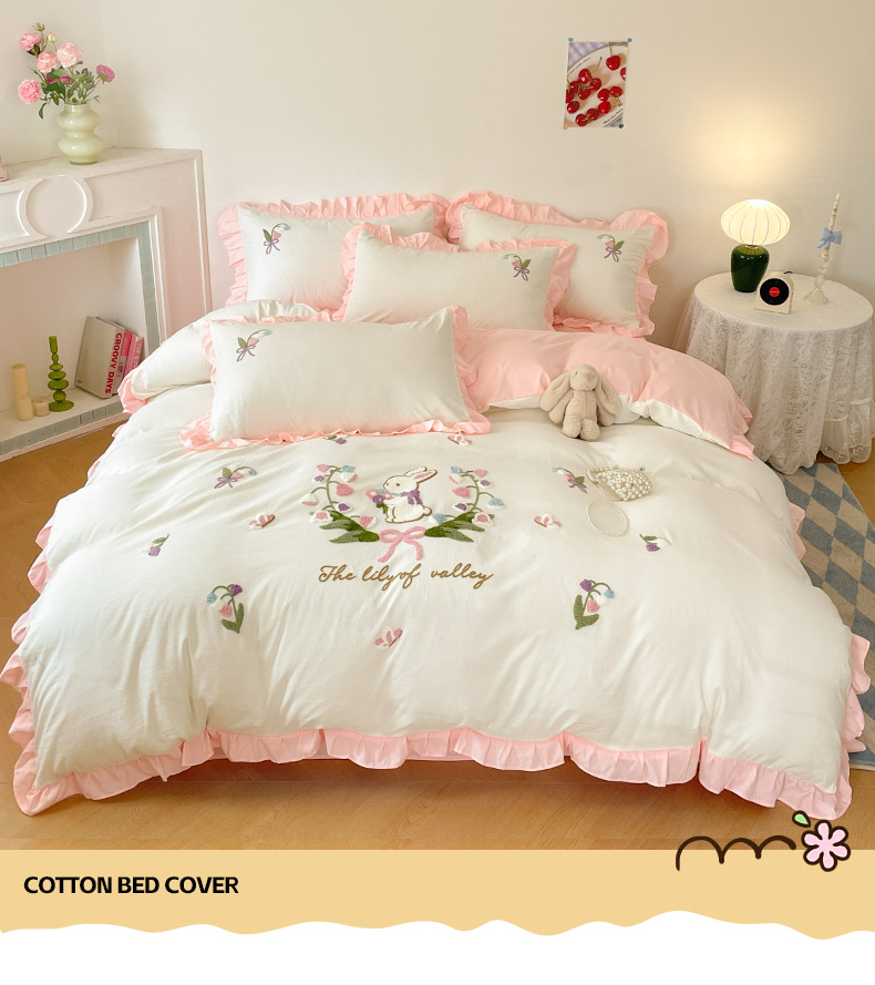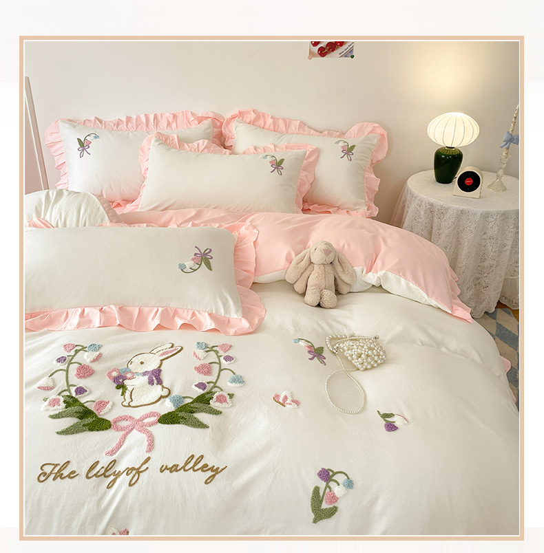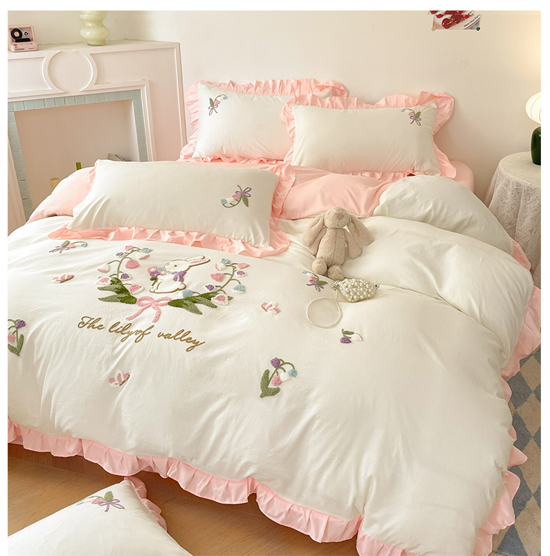 当前位置: 91家纺网 > 商品网购 > 床品套件 > 四件套 > 水洗棉四件套 > 易禾家纺 2025新款韩版小清新毛巾绣水洗棉四件套学生宿舍三件套铃兰小兔系列(专板花型) 铃兰小兔-奶白粉