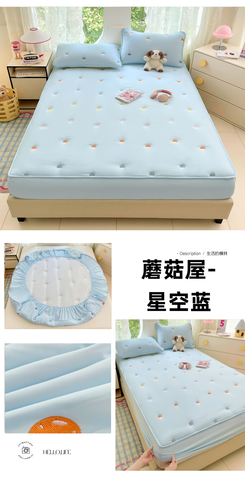 • 91家纺网 家纺一手货源 找家纺 梦舒羽 2025新款水洗棉刺绣夹棉床笠床笠防滑床罩床垫保护套榻榻米宿舍三件套 蘑菇屋-奶茶咖