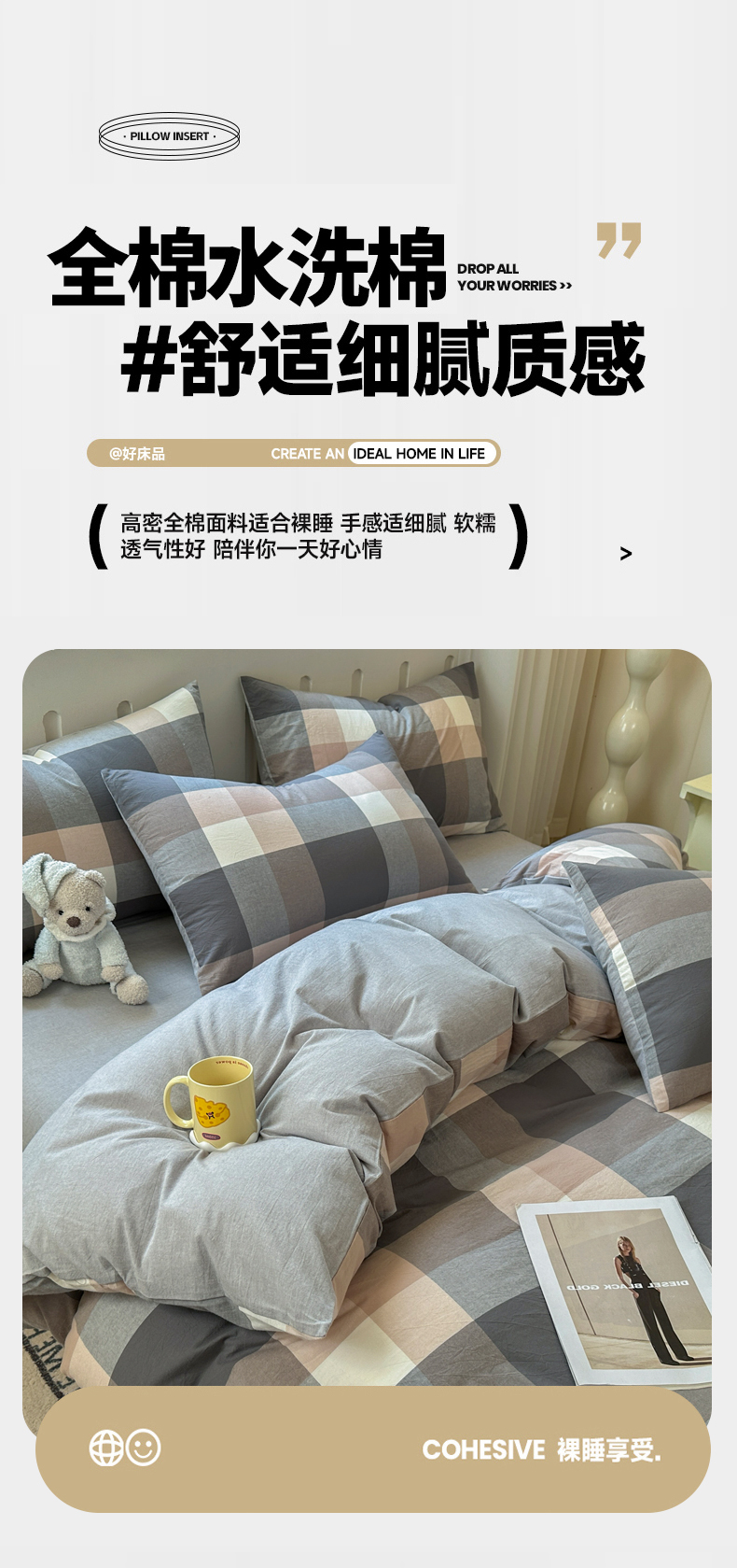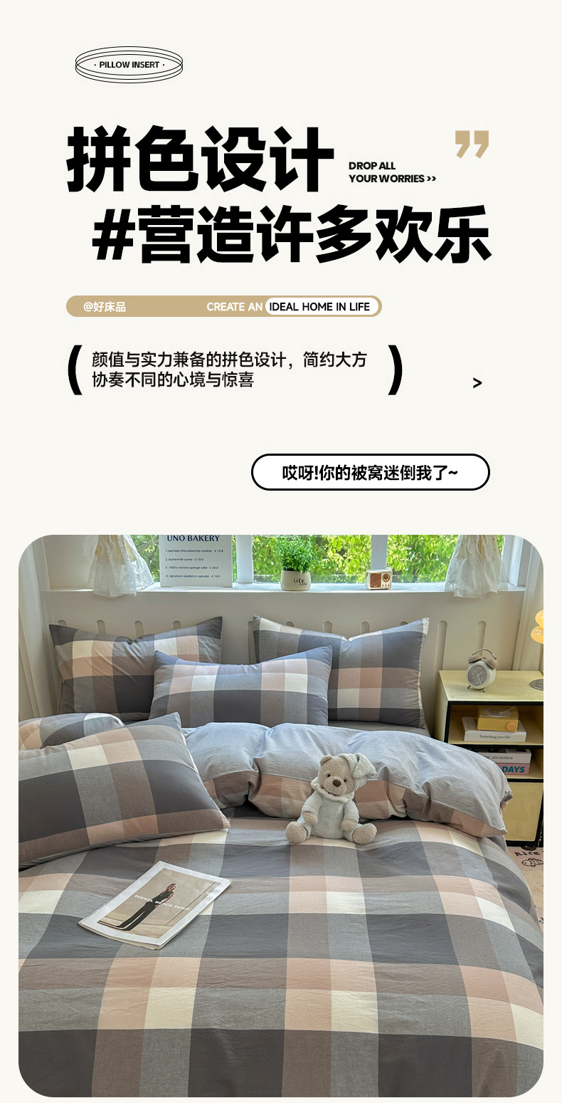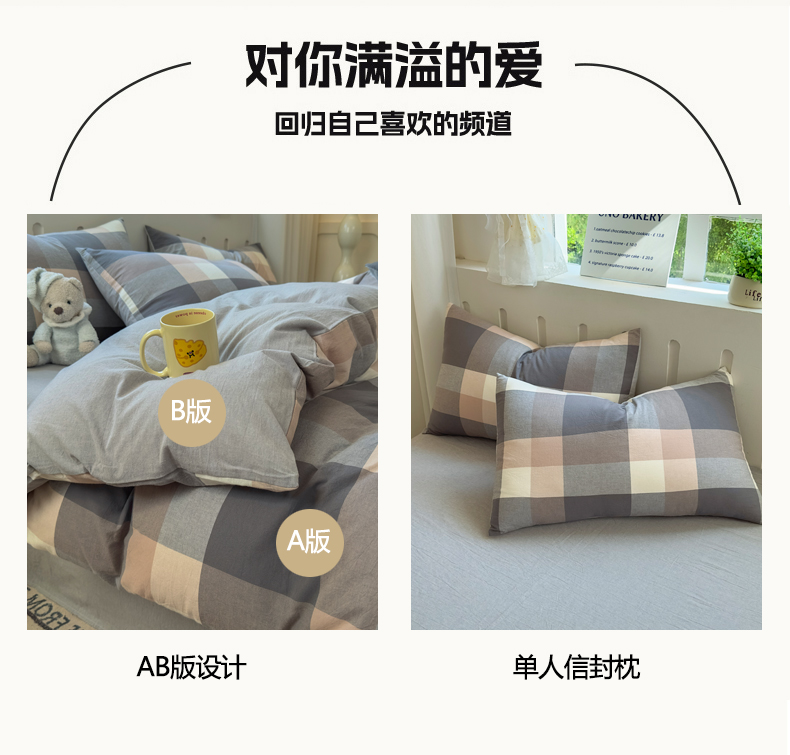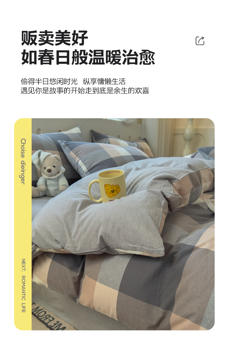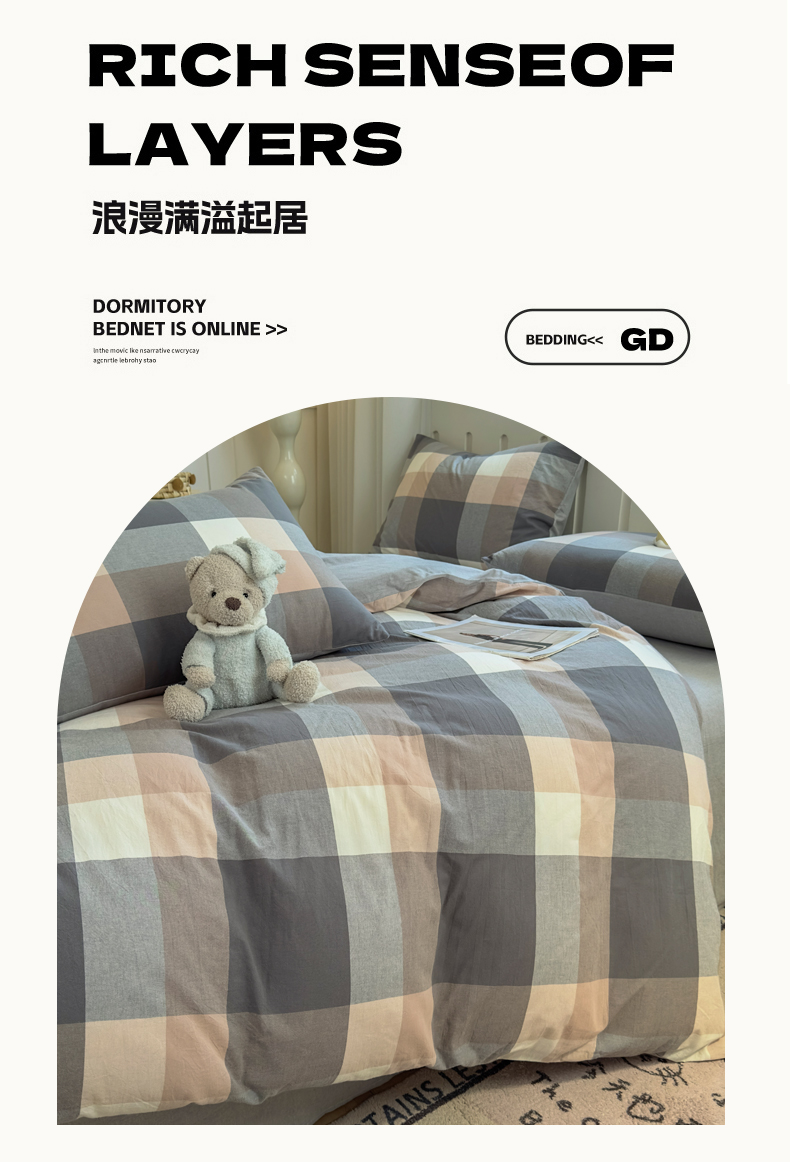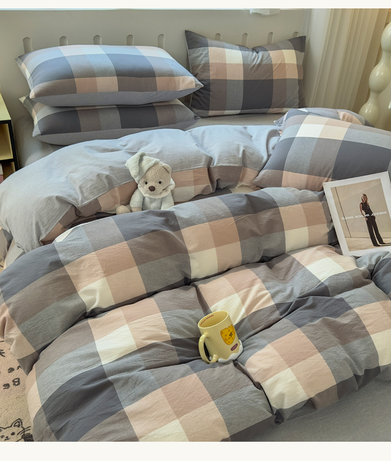 当前位置: 91家纺网 > 商品网购 > 床品套件 > 四件套 > 水洗棉四件套 > 晚依家纺 2025新款A类全棉色织水洗棉四件套纯棉格子纯色被套学生宿舍三件套定制定做 洛伊-灰咖大格